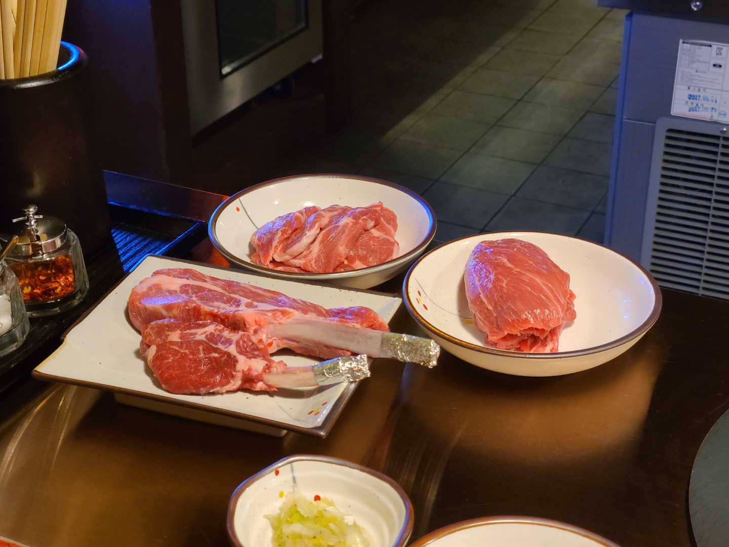 우린 셋이가서 살칫살, 등심, 양갈비를 각각 하나씩 시켜서 골고루 맛보기로 했어요.
