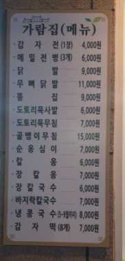 옹심이집인데 닭발은 왜 있지....ㅋㅋㅋㅋ 어쨌든 잠시 기다리다 입장했어요. 이때만 해도 국내 포스팅 안할 때여서 가게 내부 사진을 안찍었네요 ㅠ 내부엔 입식 테이블, 좌식 테이블 둘다 있었어요. 사람들로 붐비던 내부.