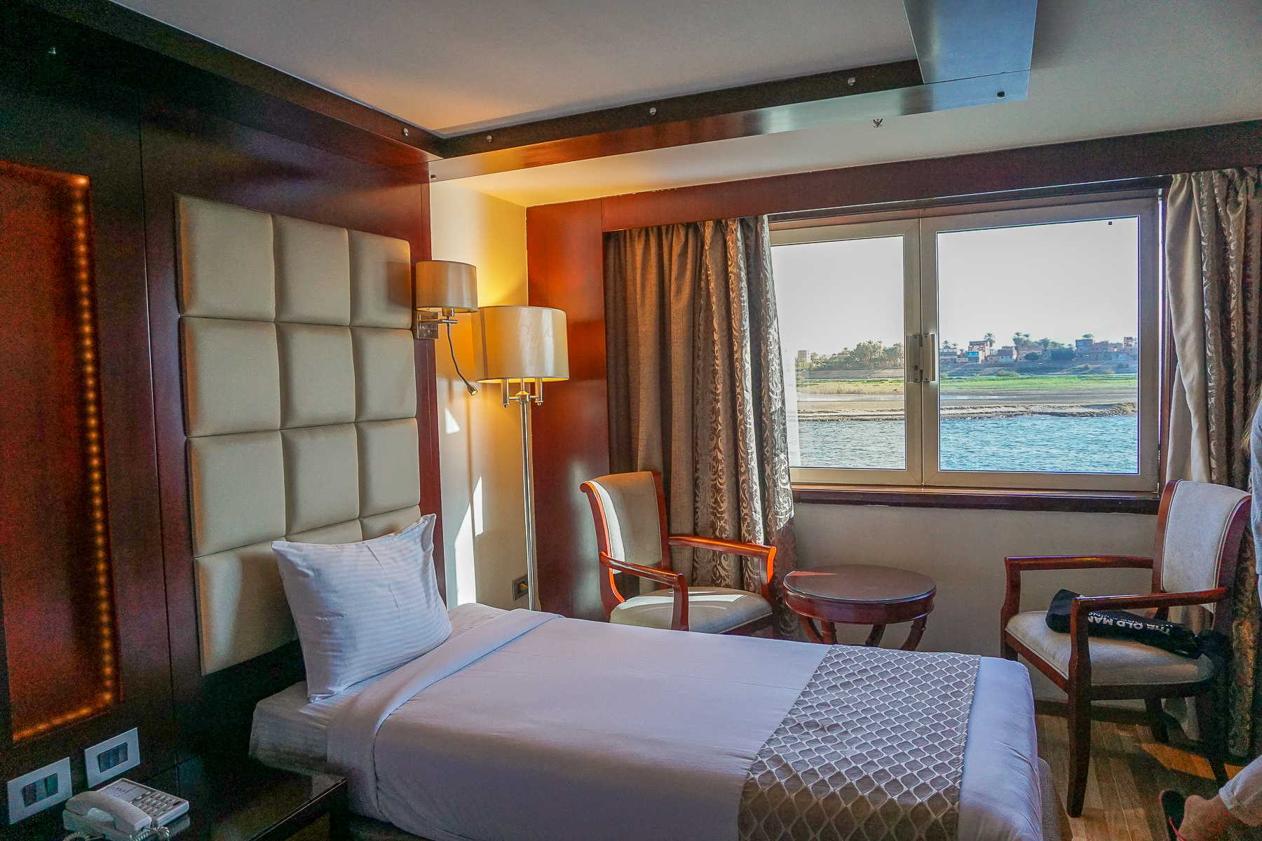 창 밖으로 나일강 풍경이 지나가는 원집사와 나의 트윈룸!