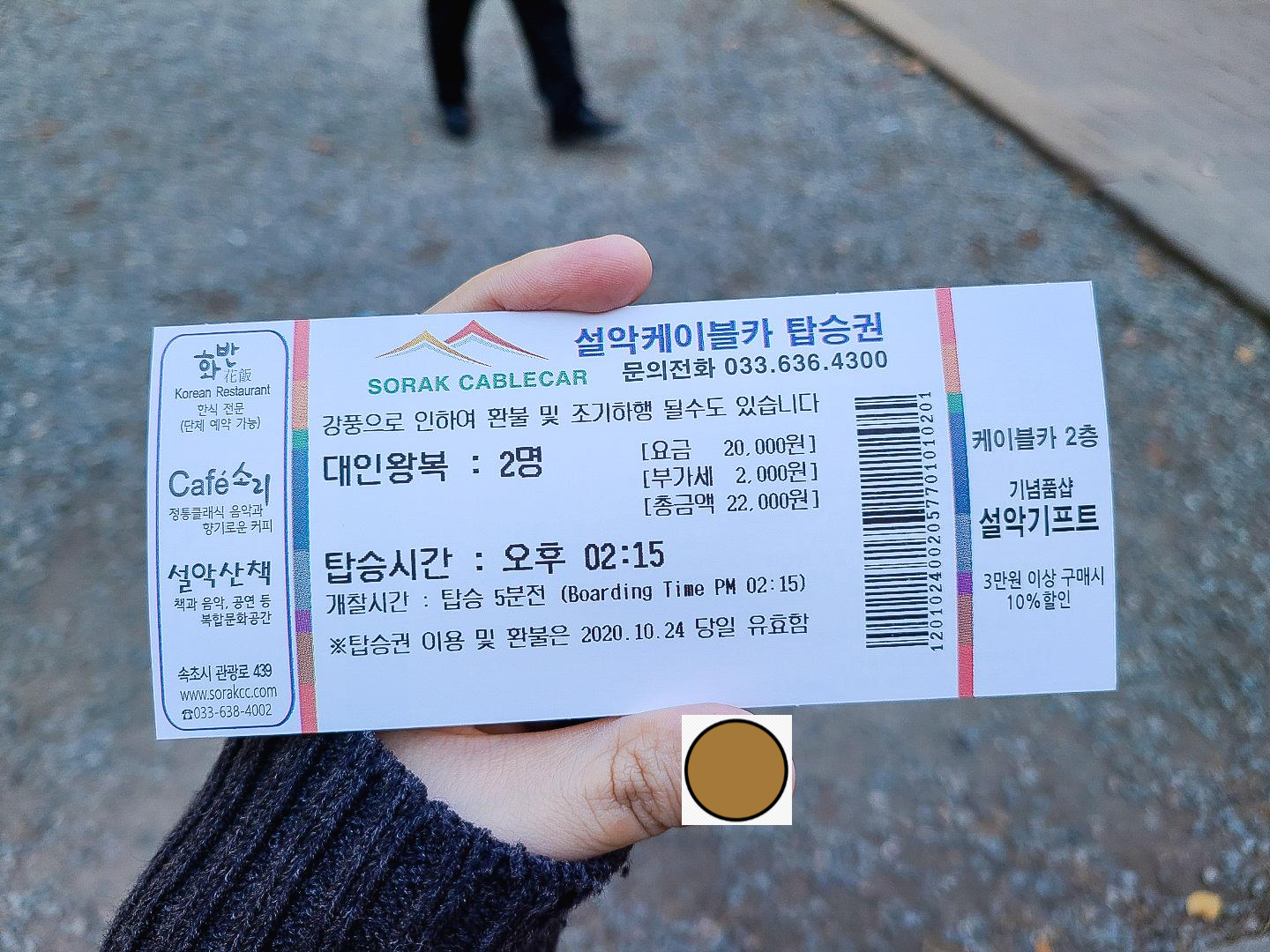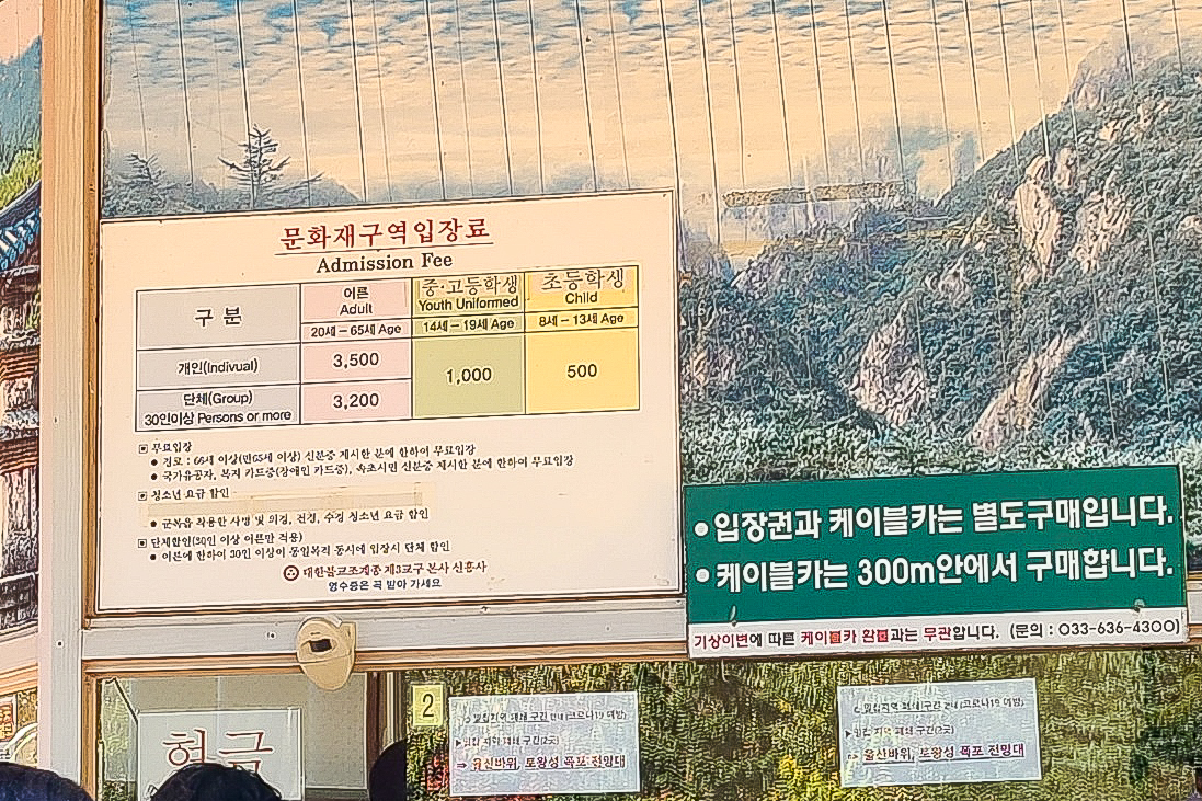 | 운행시간 | 매일 조금씩 변동되므로 공식 홈페이지에서 확인 (보통은 아침 8시~오후 5시 내외인듯) www.sorakcablecar.co.kr/ |