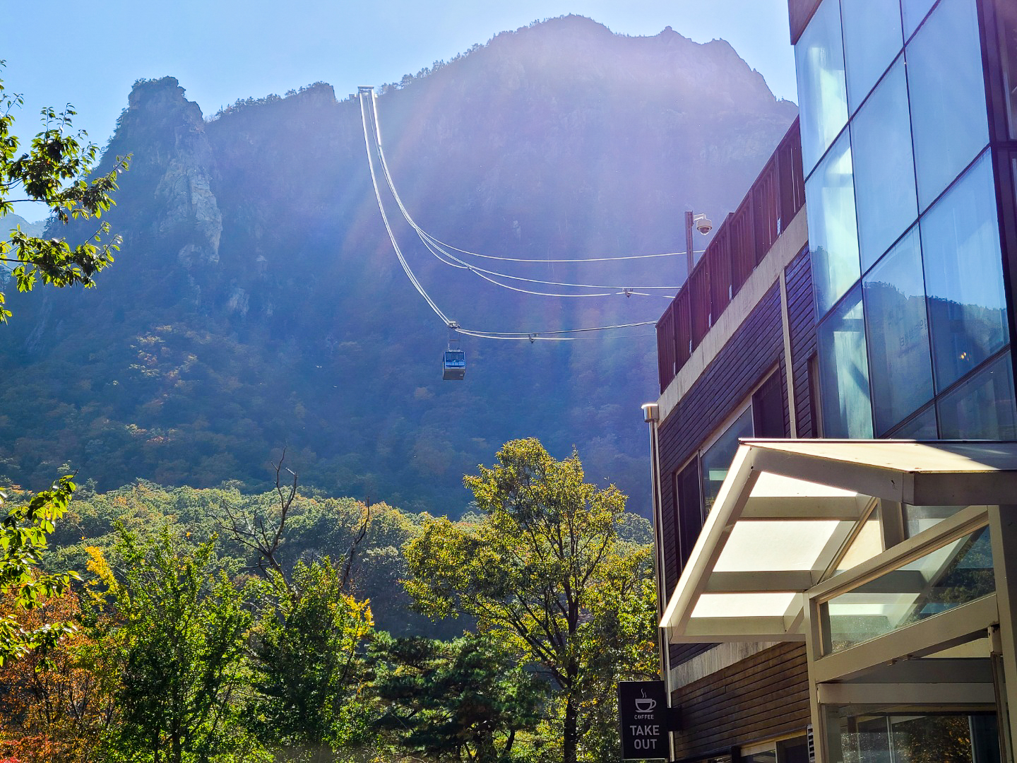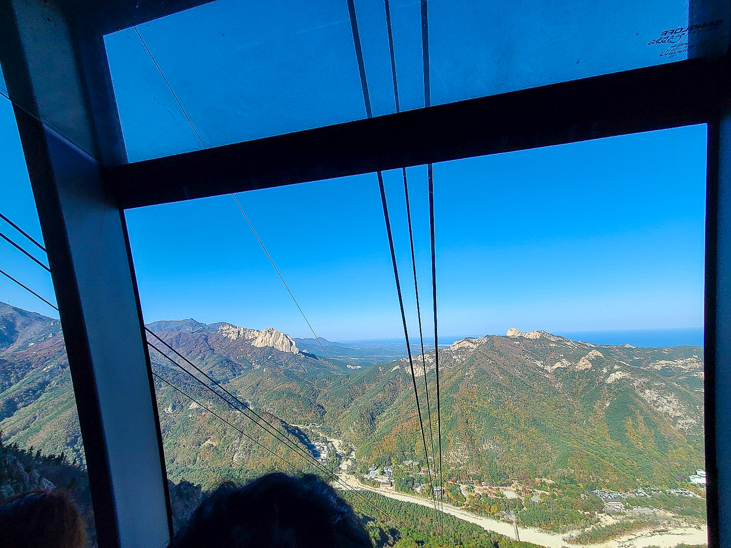 비록 5분여의 짧은 탑승시간이었지만 올라가면서 바라보는 울산바위 및 설악산 다른 봉우리들, 그리고 저멀리 보이는 동해바다 풍경이 정말 멋졌어요. 전 원래 산보다는 바다인데