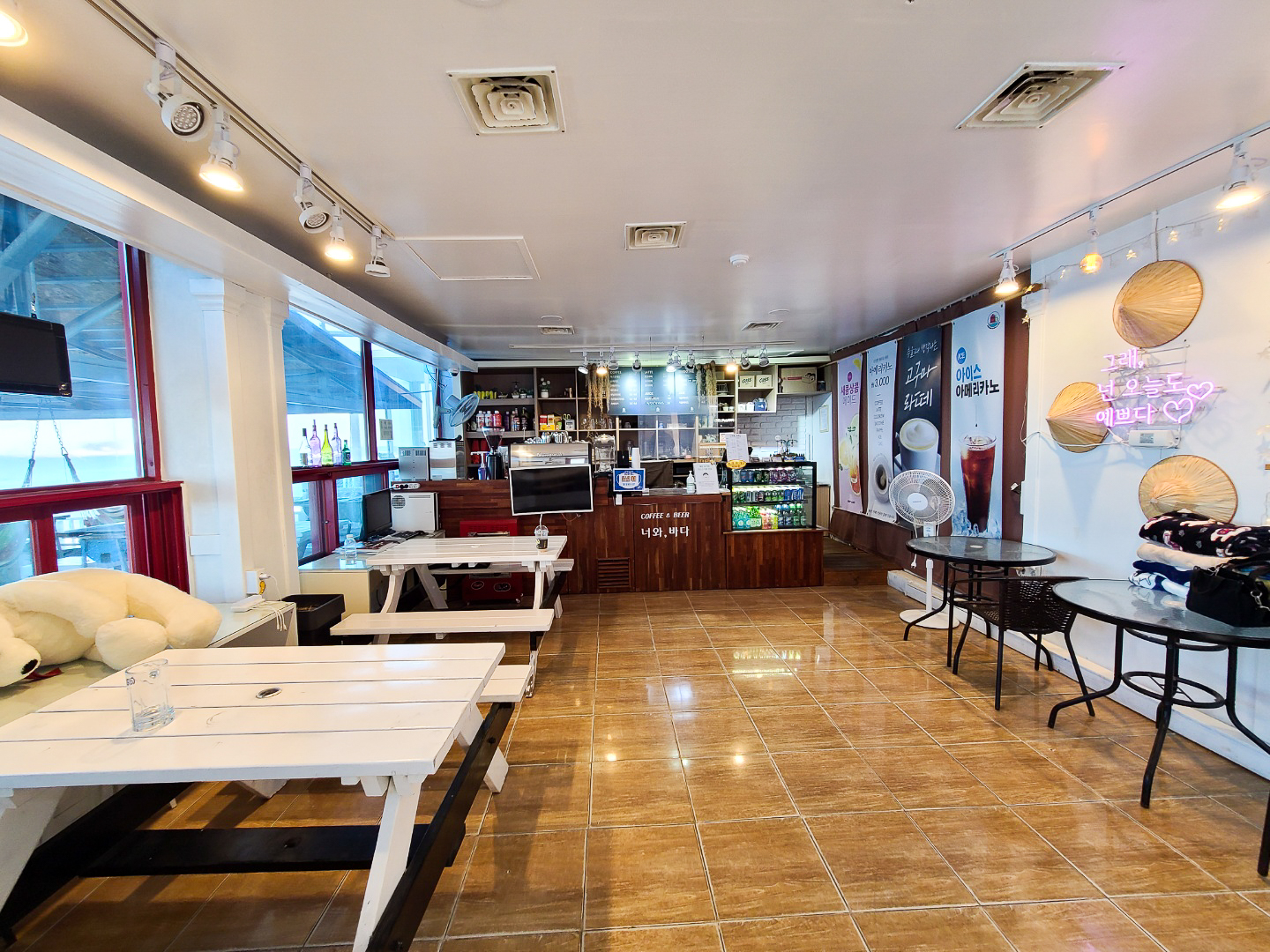 게스트펜션 1층에는 너와, 바다라는 카페가 있는데