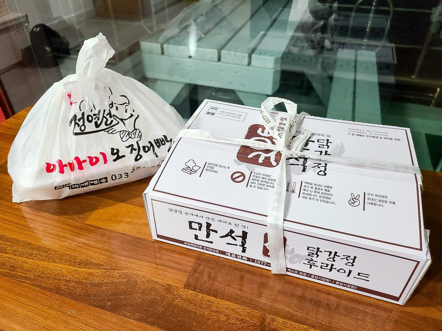 속초 중앙시장에서 사온 만석닭강정이랑 감자전, 오징어순대를