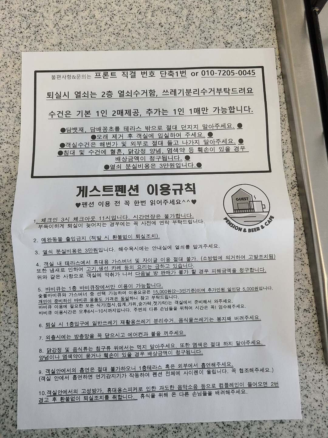 숙소 주의사항입니다.