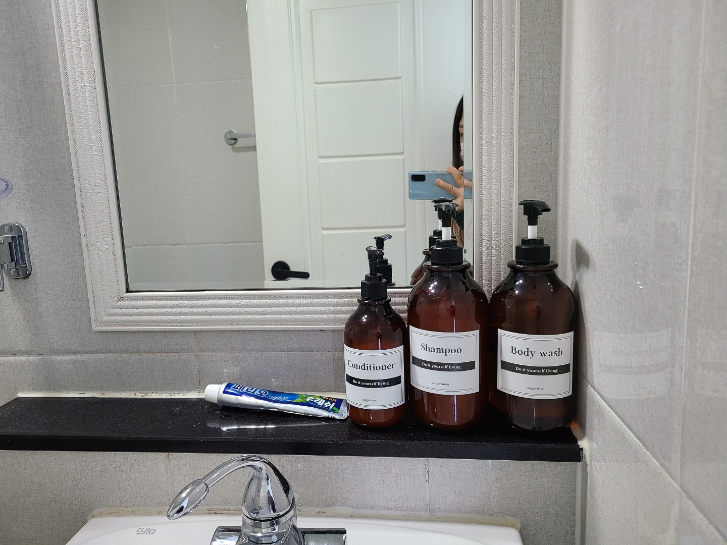 샴푸, 린스, 바디워시, 비누, 치약이 구비되어 있었어요.