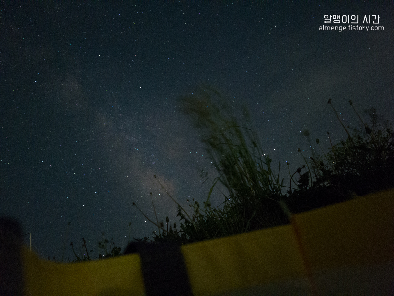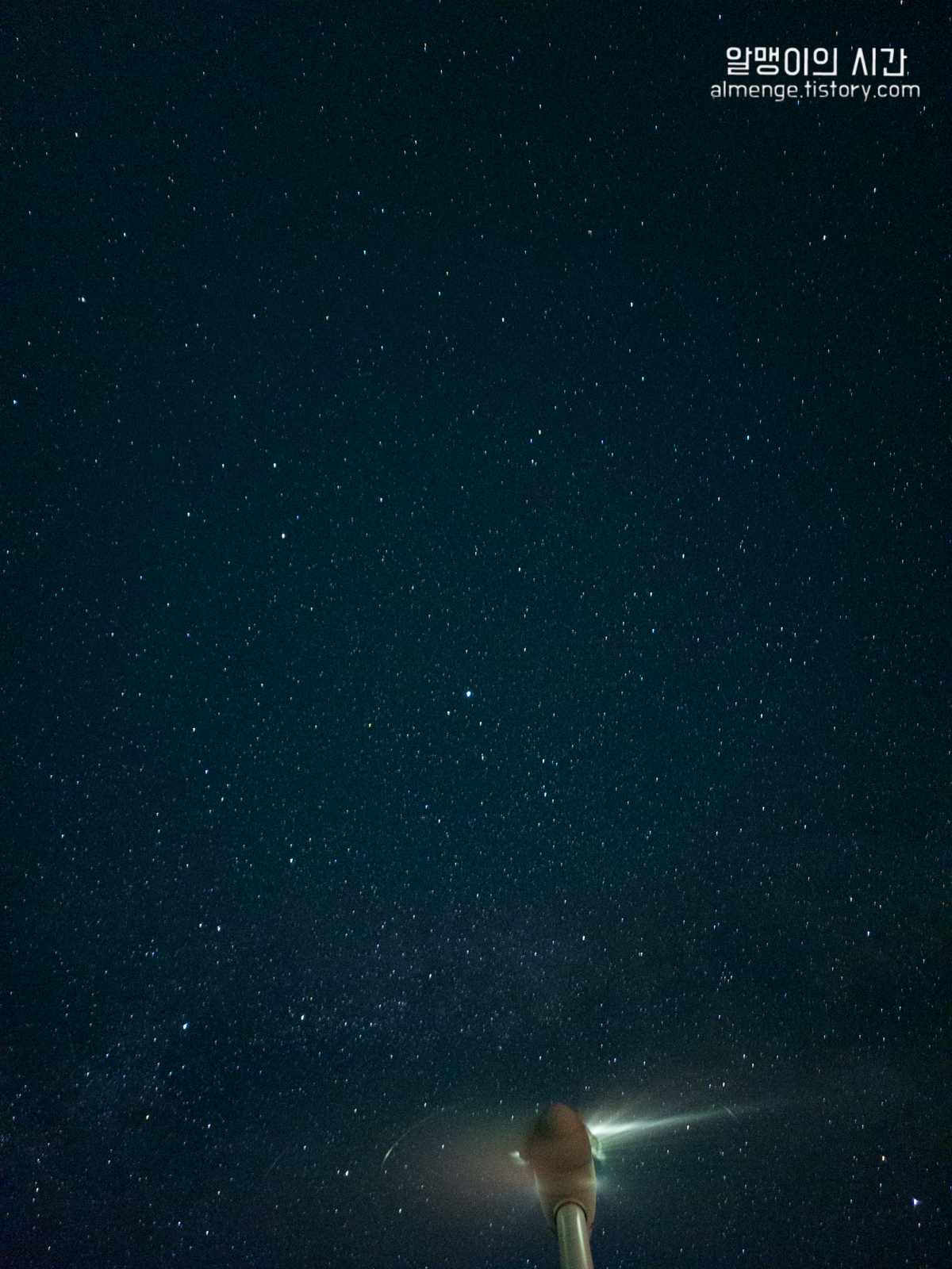 좋은 카메라, 렌즈, 삼각대로 찍으면 더 멋진 사진을 건질 수 있죠. 하지만 저는 가기 전 일기예보가 안좋길래 삼각대, 미러리스 카메라 다 두고 갔어요 흑흑 ㅠㅠㅠㅠㅠㅠ 하지만 구라청에 당했고(...) 예보와는 다르게 엄청나게 멋진 밤하늘을 만났고, 사진이 많이 아쉬워졌을 뿐이고....