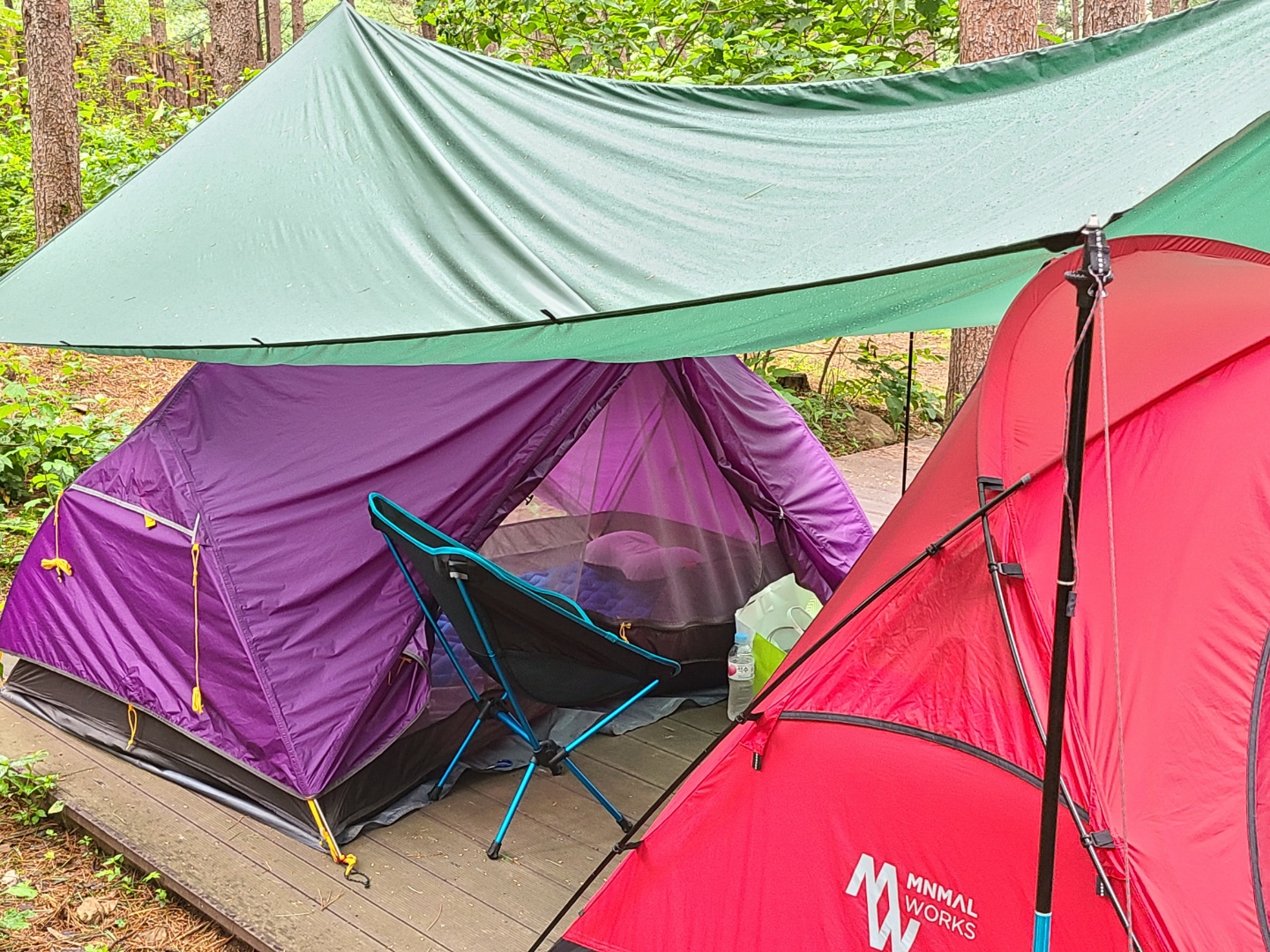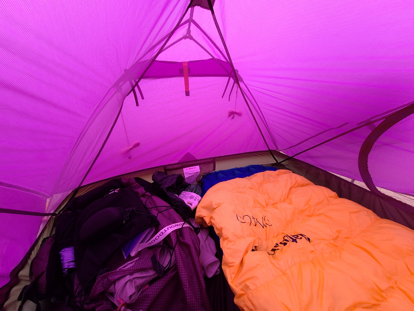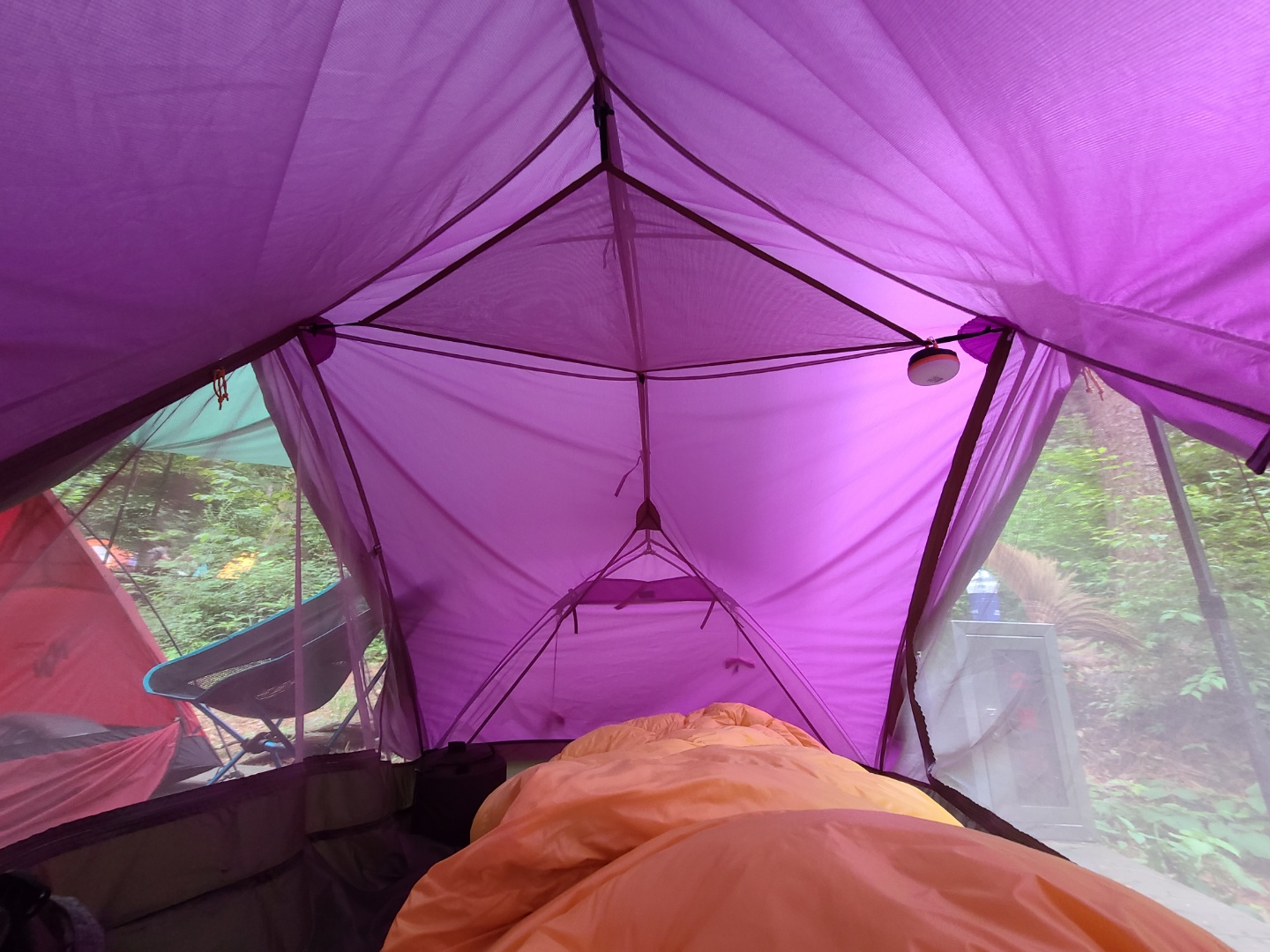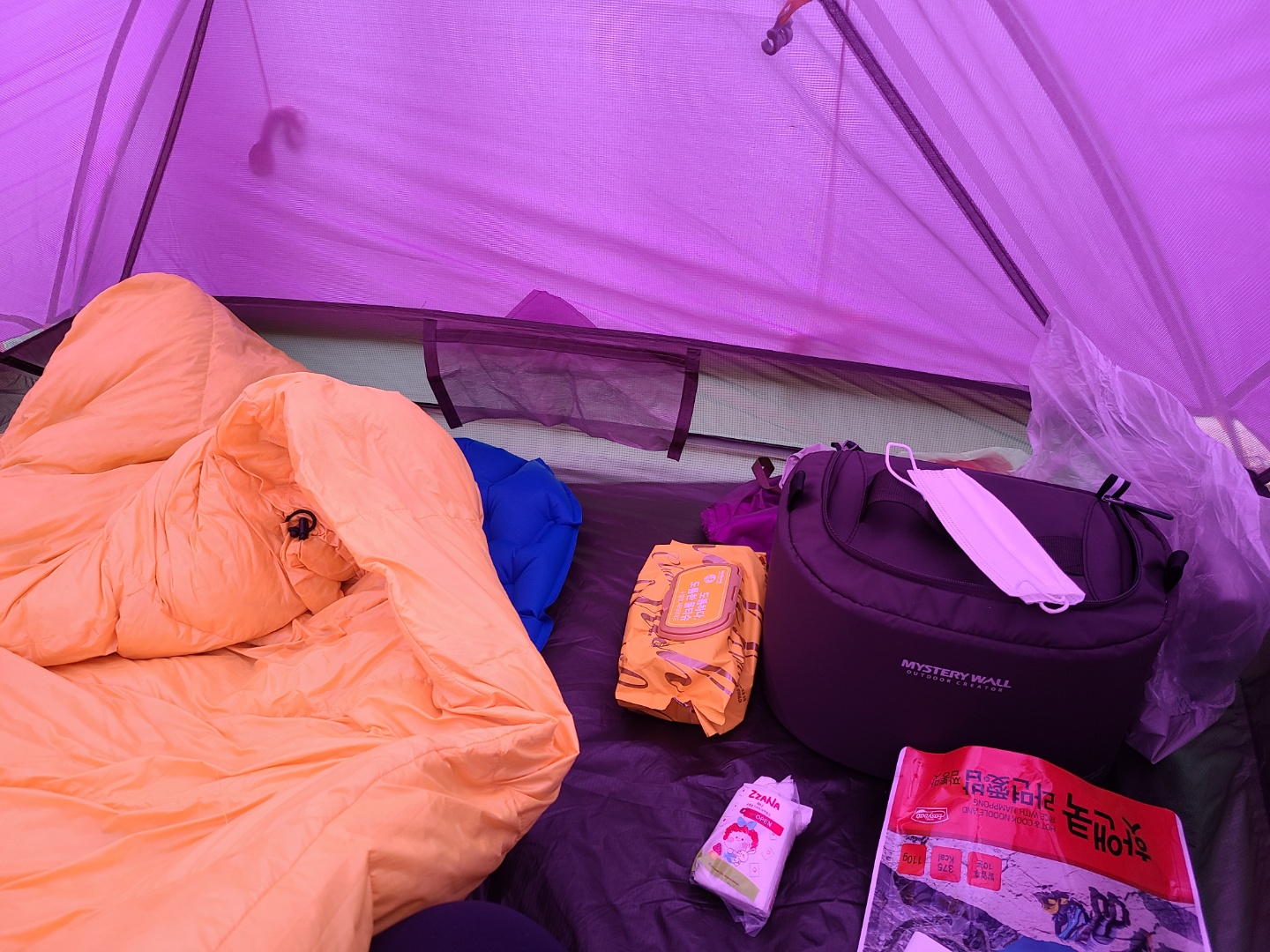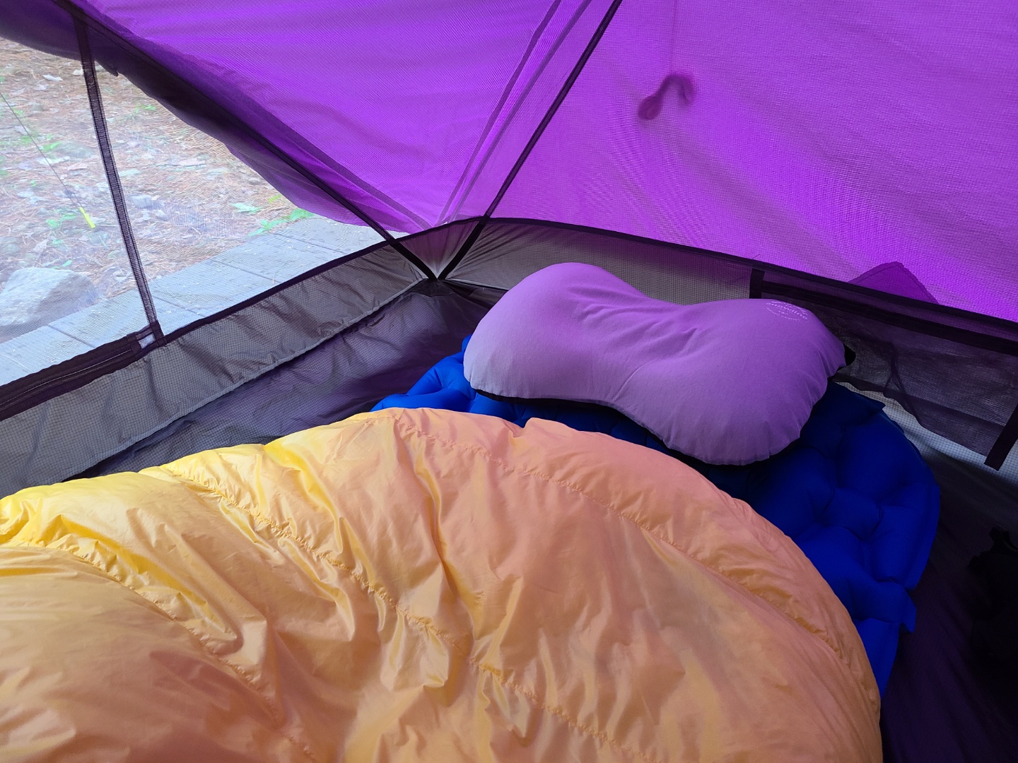 그래서 백패킹용 텐트는 2인용이라 써 있어도 실제로는 1인용이라 보면 된다. 실제로 같이 백패킹 간 친구 텐트를 구경했는데 2인용이었음에도 나보다 내부가 좁아 사실상 1명이 자야할 크기였다.