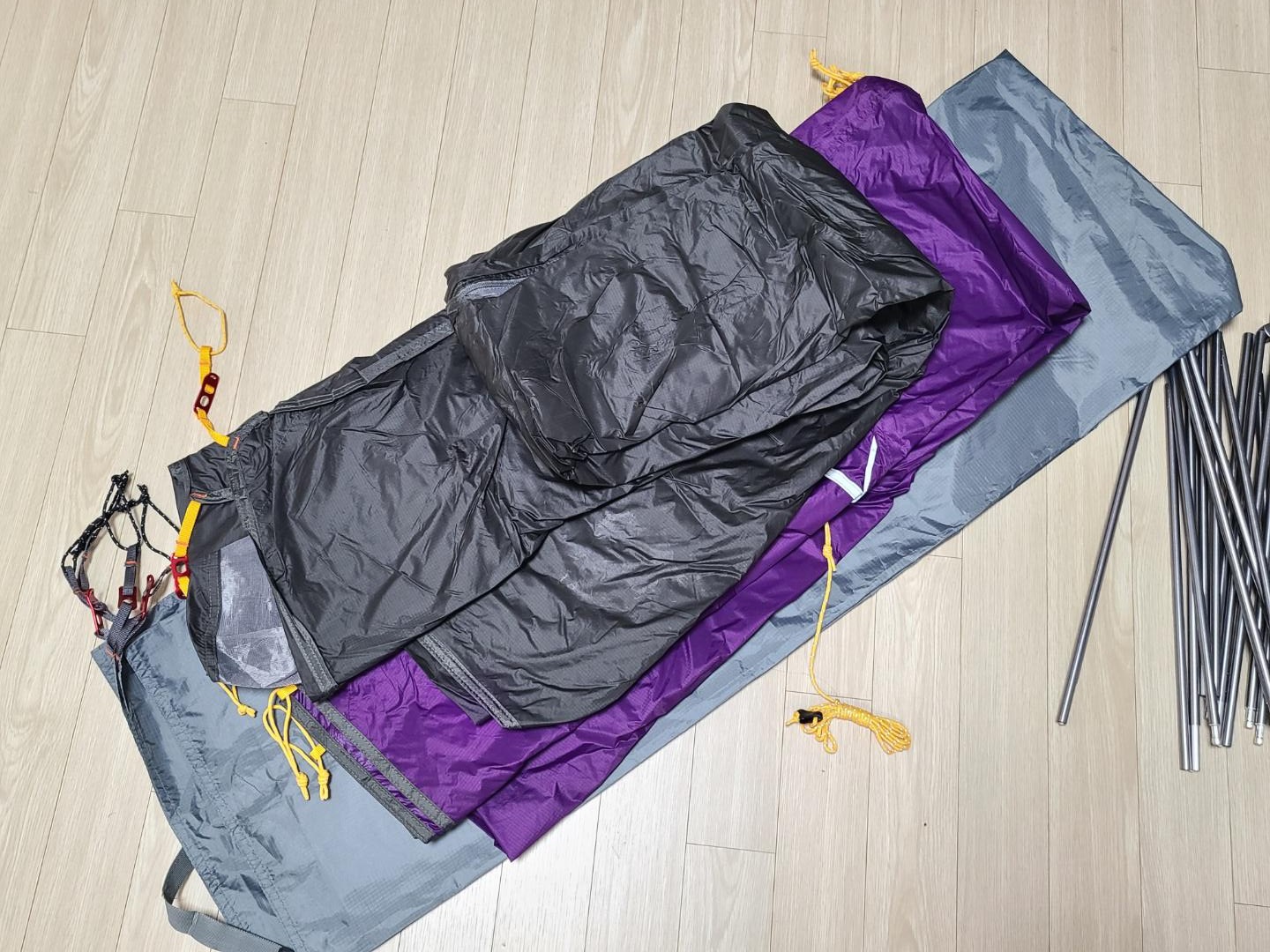 다만 이너 텐트가 매쉬 재질이고, 플라이에도 스커트가 달려있지 않기 때문에 겨울엔 사용하기 힘들 듯하다. 난 겨울엔 백패킹 계획이 없어 삼계절용으로 산거라 괜찮은데, 만약 동계도 할거라면 동계에 사용하기엔 적절하지 않아 보임. 실제로 동계에 사용하신 분들의 후기도 봤는데 거의 혹한기 훈련 수준이더라.