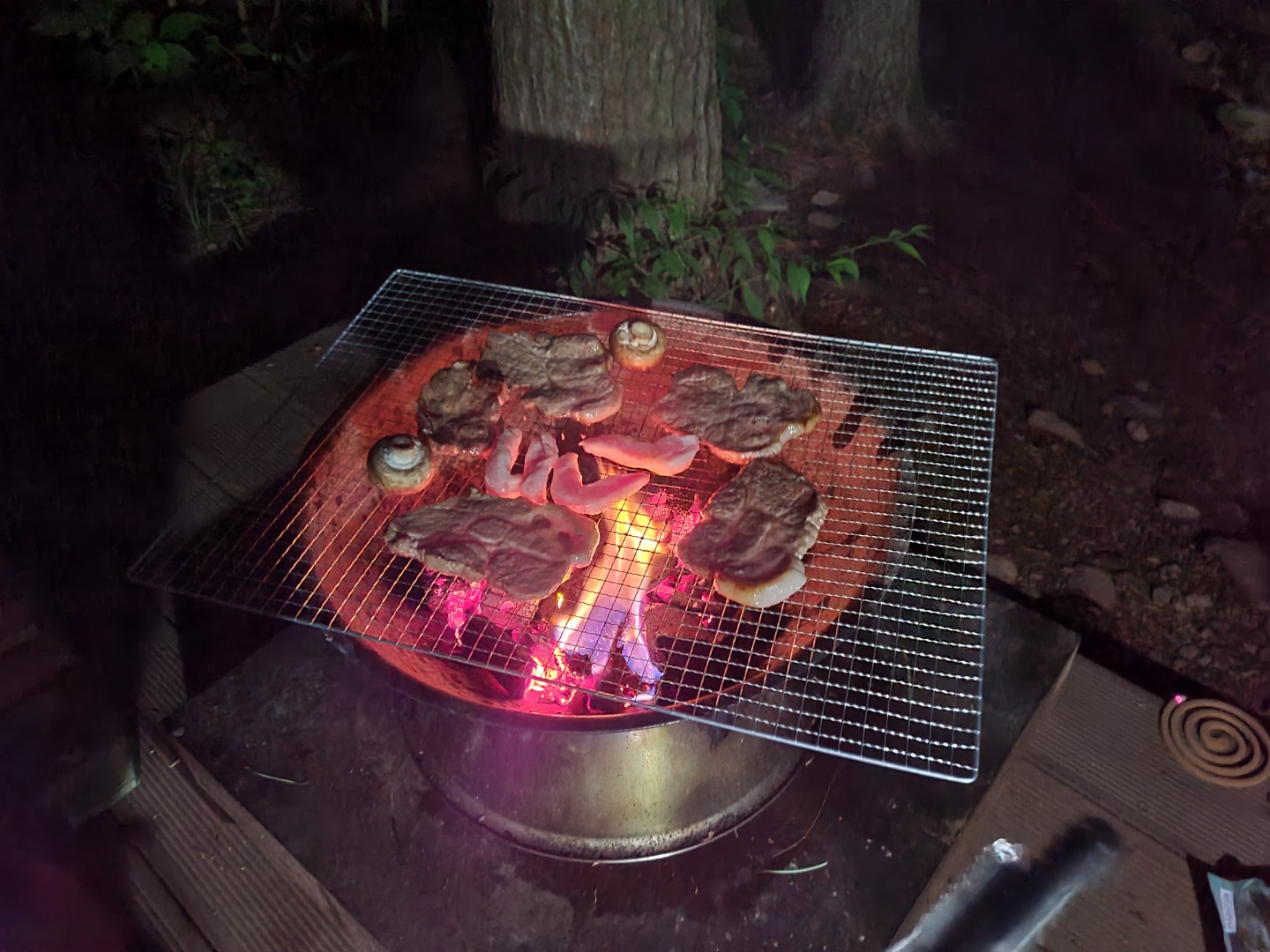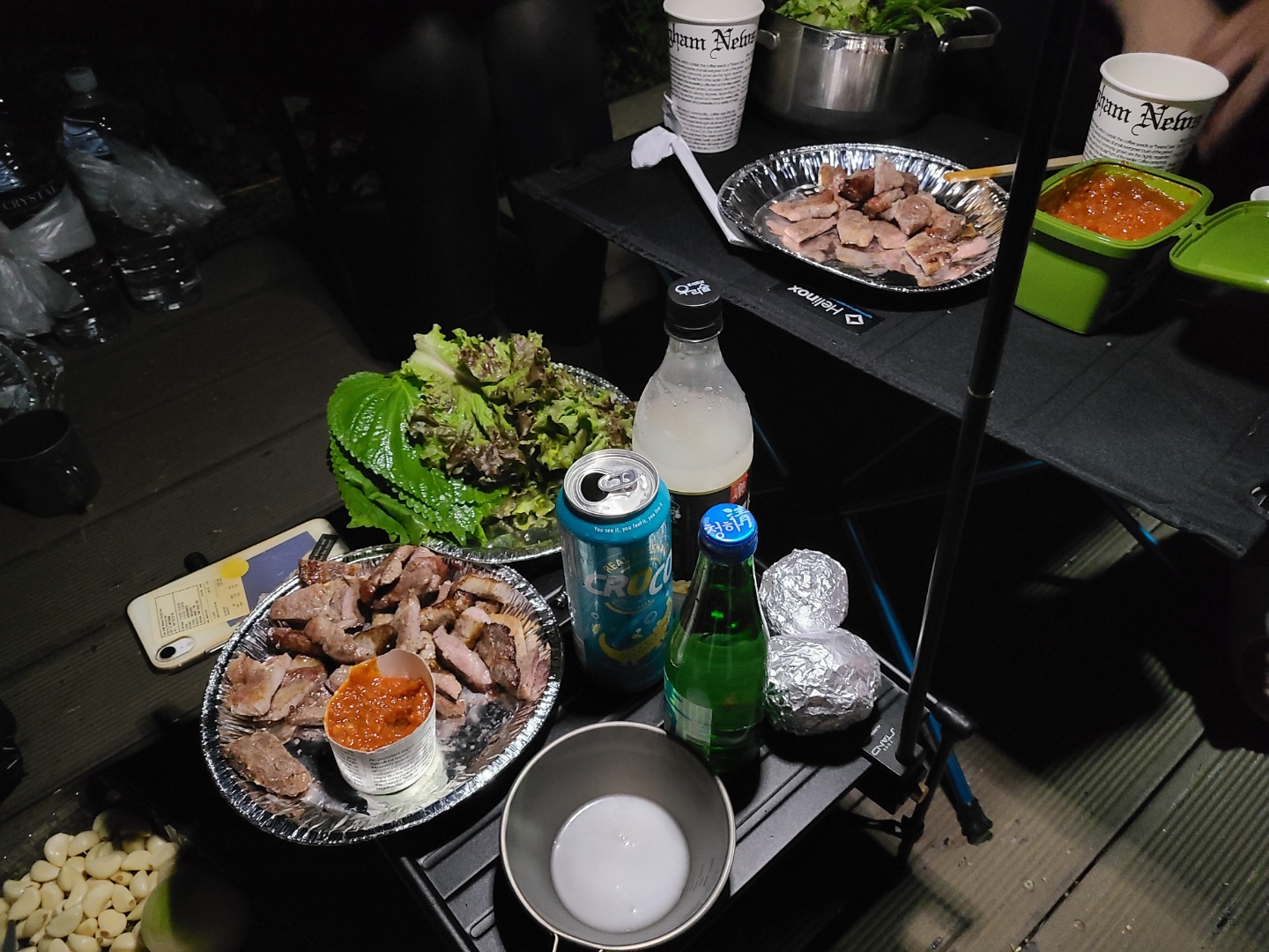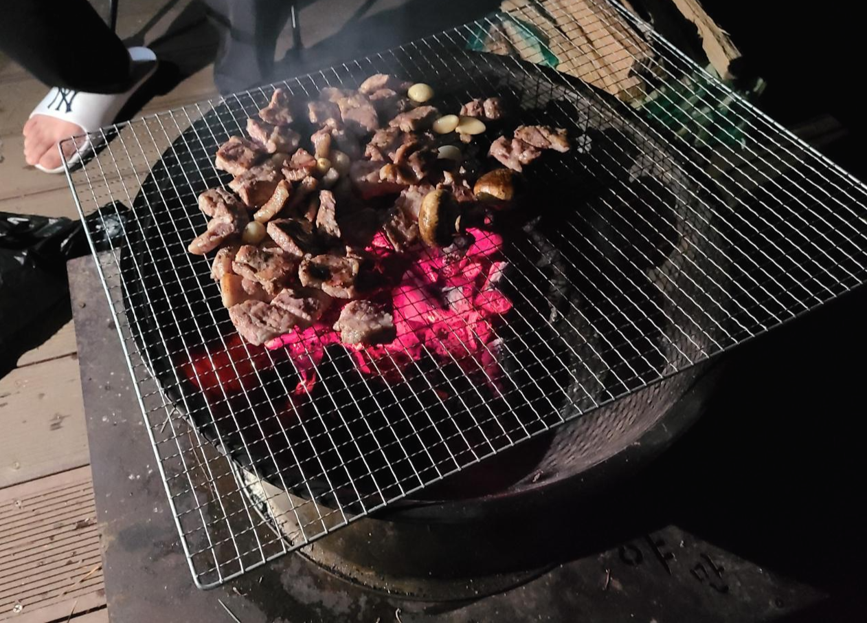 캠핑장이라 화로대가 있으니 고기파티하기도 좋음 ㅎㅎ 다만 굽는 사람은 불 앞에서 모공이 한 없이 넓어지는 기분을 느껴야만 한다. (고마워 친구야)