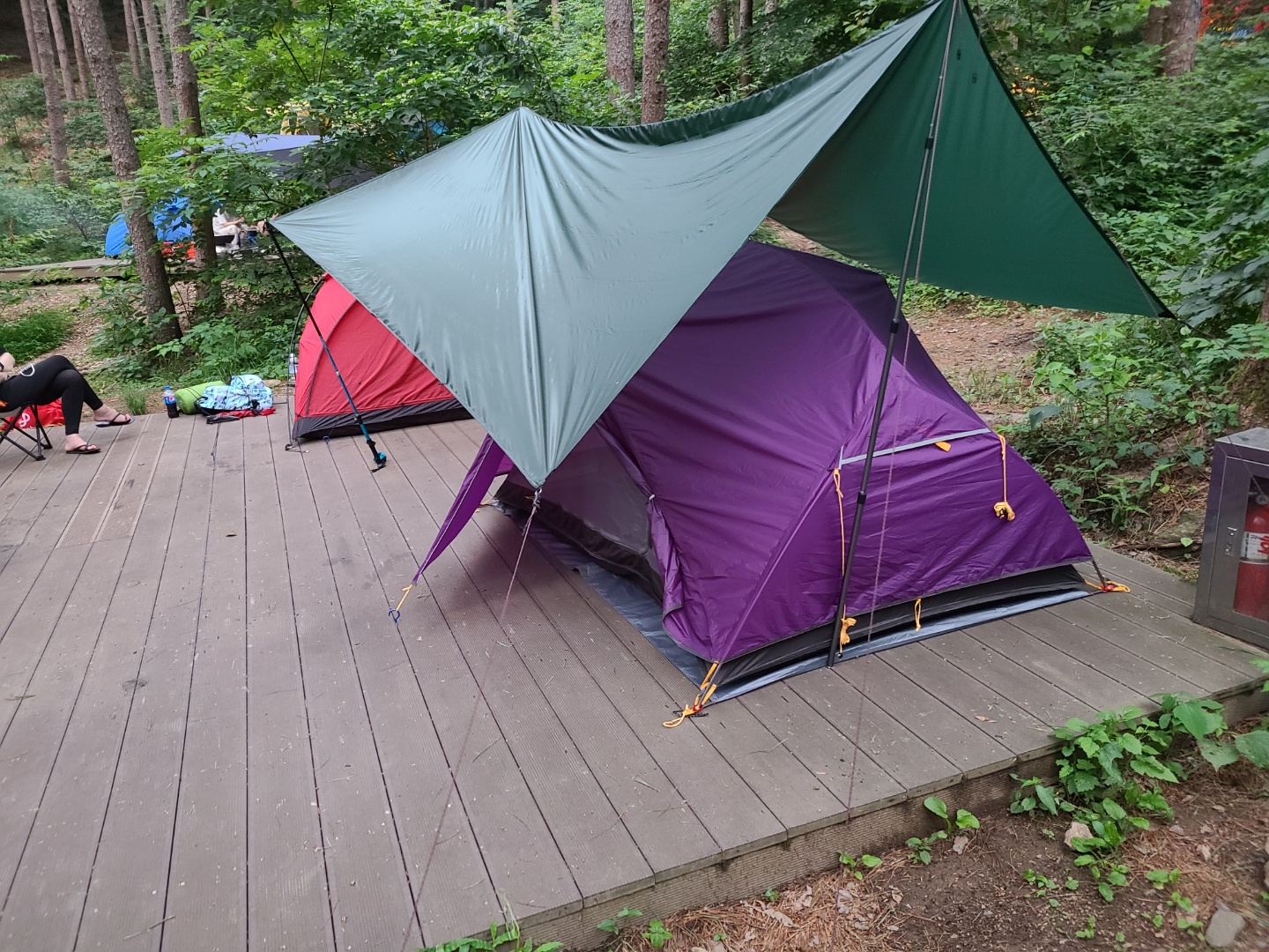 비 그치고서야 주섬주섬 나와 '타프 아래만 땅 마른거 봐봐' 하면서 타프 효과에 만족하는 중 ㅎㅎ
