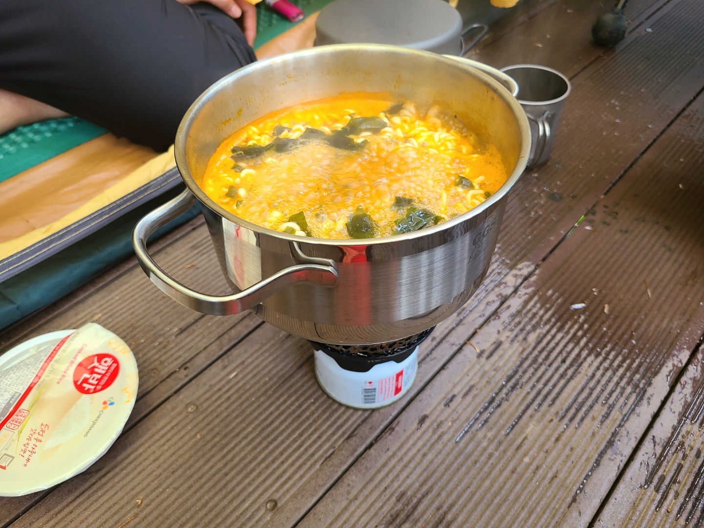 캠핑 아침에 라면은