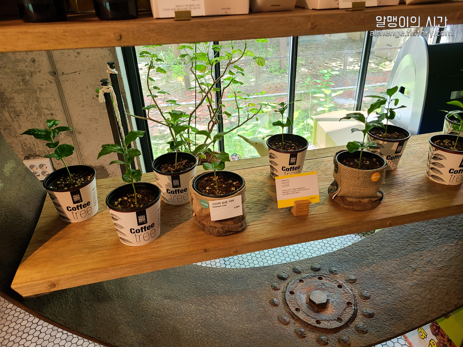 들어서자마자 시선을 사로잡은 앙증맞은 커피 화분! 심겨 있는 식물이 커피나무 모종이에요. 한 팟에 5000원인데다 모종이 마치 조화처럼 잎사귀가 반짝반짝 예쁘길래 하나 들일까 하다