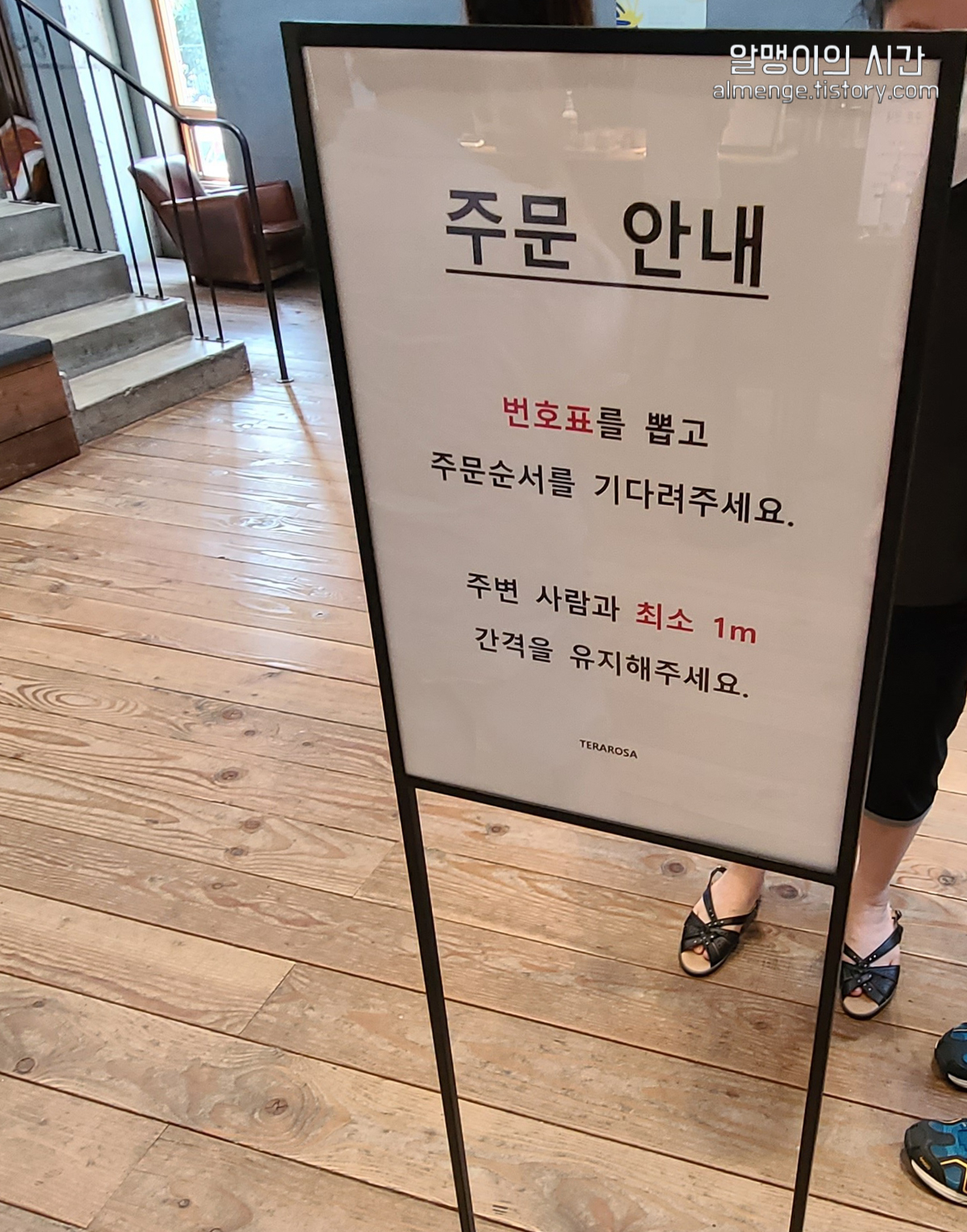 아트샵을 구경하고 나와 카페로 왔어요. 입구에서 손소독, 큐알체크를 마치고 입장!