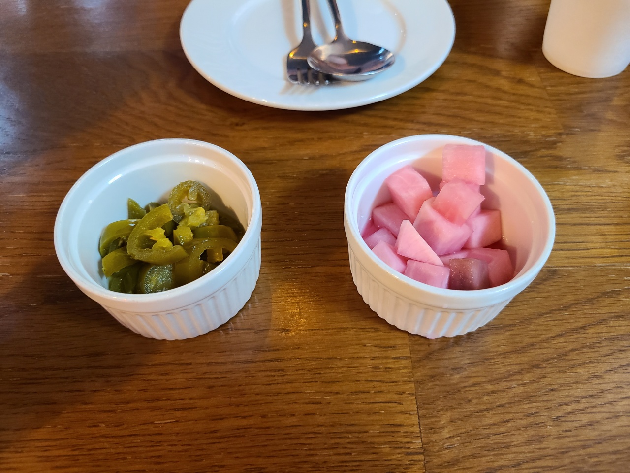 피클은 셀프바에서 직접 가져와서 먹는 시스템! 주인 부부 중 남편분이 직접 만드는 수제 피클이래요.