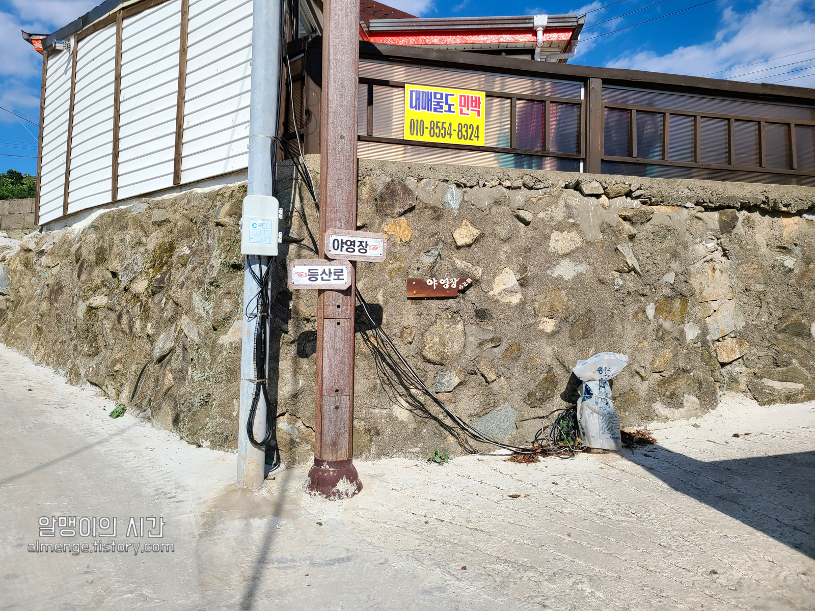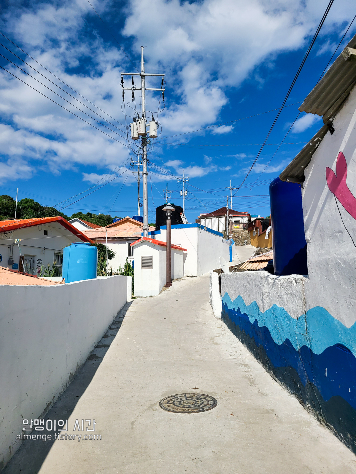 구판장에서 폐교 캠핑장까지는 도보로 5분 정도. 가는 길에 그려진 벽화들을 구경하는 재미가 쏠쏠. 다이버의 집도 있나보다 ㅎ 다이빙 하고싶다 ㅠㅠ 우리가 갈림길에서 방향을 고민하고 있으니, 지나가던 주민 아저씨께서 우리가 묻지도 않았는데 방향을 알려주시고는 쿨하게 갈 길 가신다. 이게 섬마을 정서인가 ㅎㅎ
