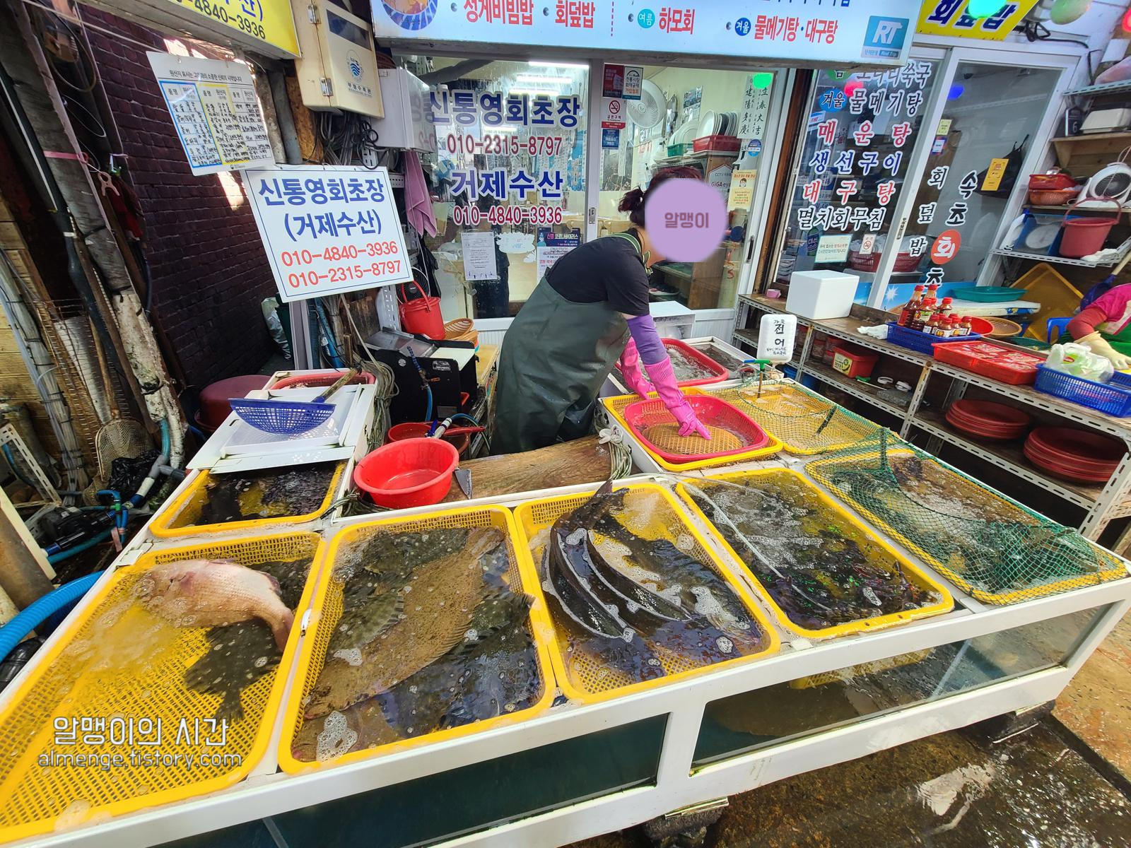 우린 2만원 어치 달라고 했더니 우럭, 돔, 전어를 섞어 주셨다. 금액에 맞춰 주시고 친절하심! 말 잘하면 서비스도 조금 주신다. 친구는 다음날 여기서 또 회를 포장해서 본가에 가져갔다.