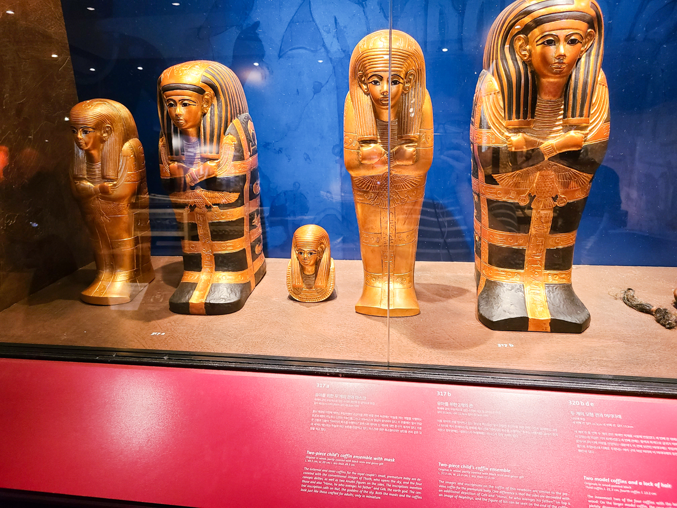 이집트에선 진품을 눈으로 보는 것에 의미를 두었다면, 용산 전쟁기념관 전시는 투탕카멘의 유물과 각각의 의미에 대해 더 알차게 관람할 수 있었던 것 같아요.