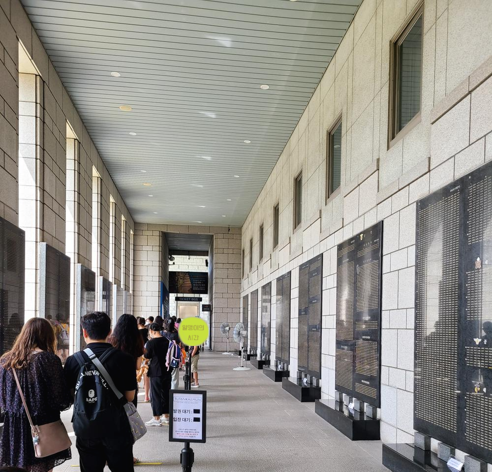 기계에 대기 걸어놓고 심심해서 용산 전쟁기념관 야외를 둘러봤는데요. 탁 트인 공간에 그닥 할 건 없어서 전쟁기념관 앞마당만 좀 구경하다 그늘로 돌아와 계단에 앉아서 기다렸어요. 폰으로 문자 오면 바로 입장해야하기에 멀리 가 있기는 좀 그래요.