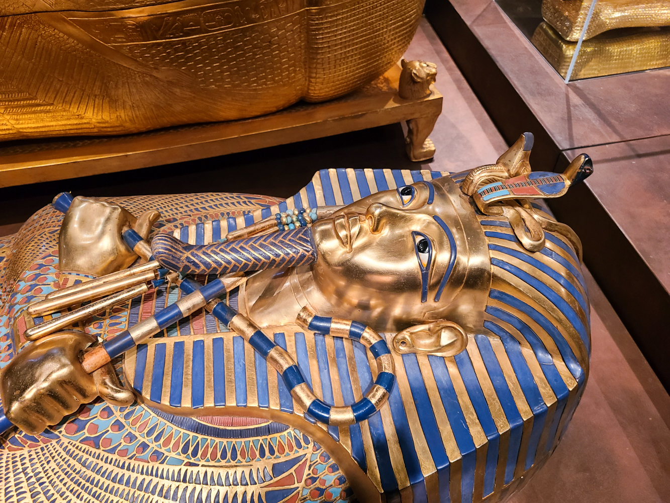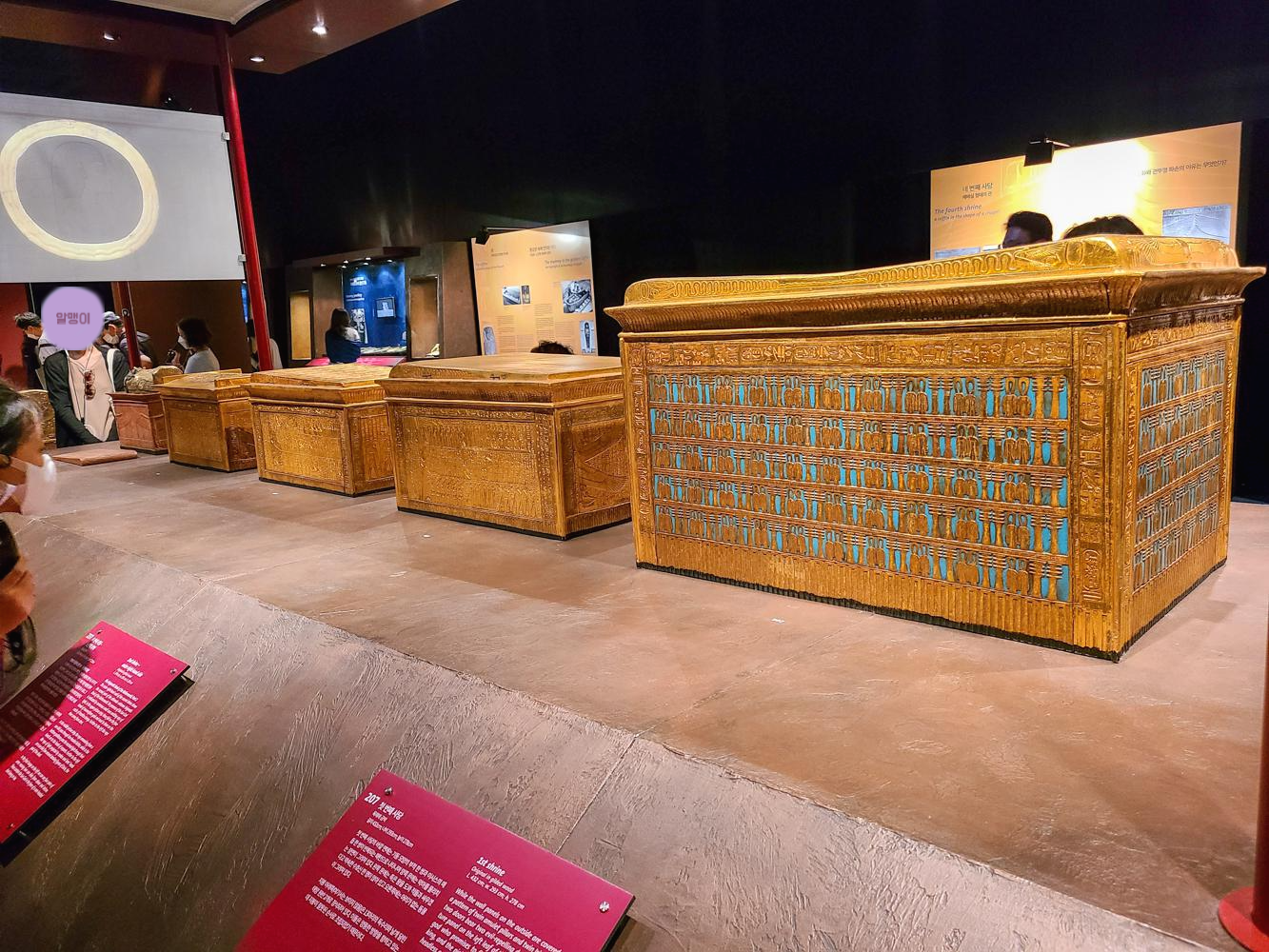 전실, 보물의 방을 다 보고 나면 왕의 미라와 황금 마스크가 들어 있던 사당 및 관을 재현해놓은 공간이 나오는데요. 투탕카멘의 미라는 마치 러시아 마트료시카 마냥 겹겹이 쌓인 사당과 황금관 가장 안쪽에 있었어요.
