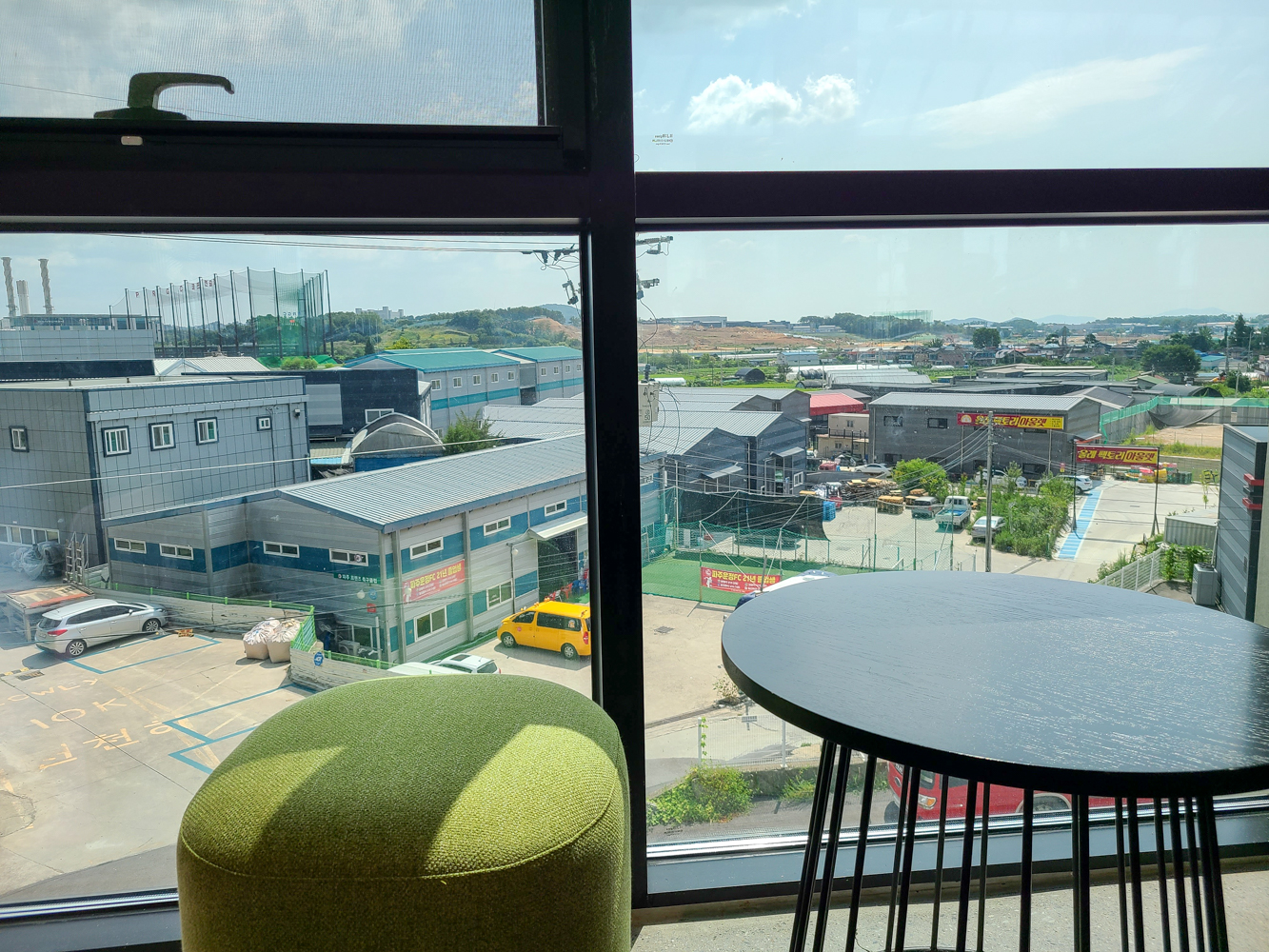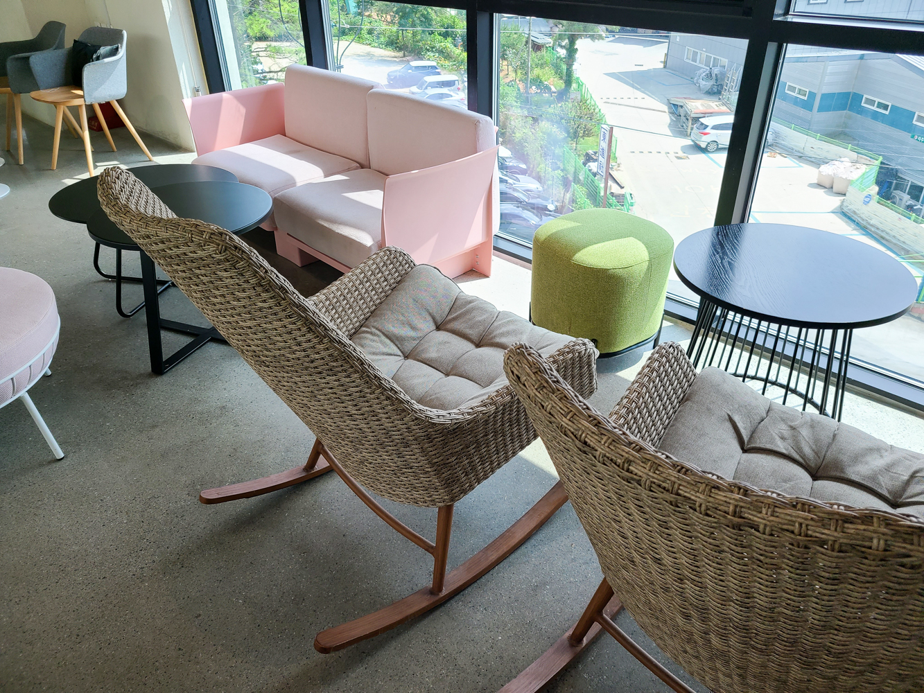 앉을 자리는 곳곳에 있지만 저는 뷰는 별로여도 안락한 흔들의자 자리를 택했어요. 보시다시피 뷰는 그냥 축구학원뷰 ㅋㅋㅋㅋ 자리는 1층, 2층, 3층 곳곳에 있으니 본인 취향 자리 골라 앉으시면 될듯!