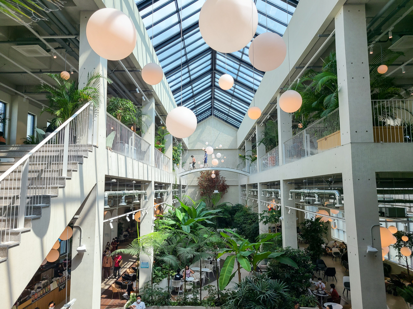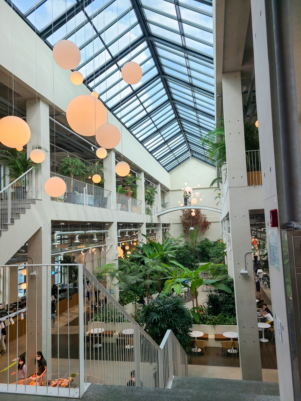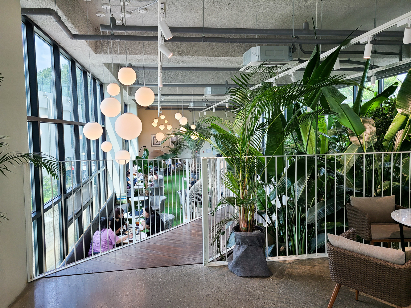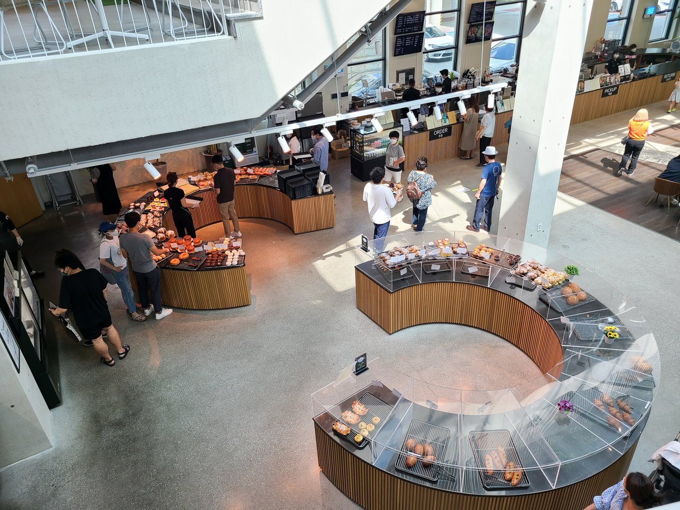 베이커리류를 구경했으니 이제 앉을 자리를 탐색하며 여기저기를 둘러봅니다. 인스타에서도 많이 보이던 그 유명한 포토 스팟은 요기구요! 저멀리 보이는 구름다리에 서면