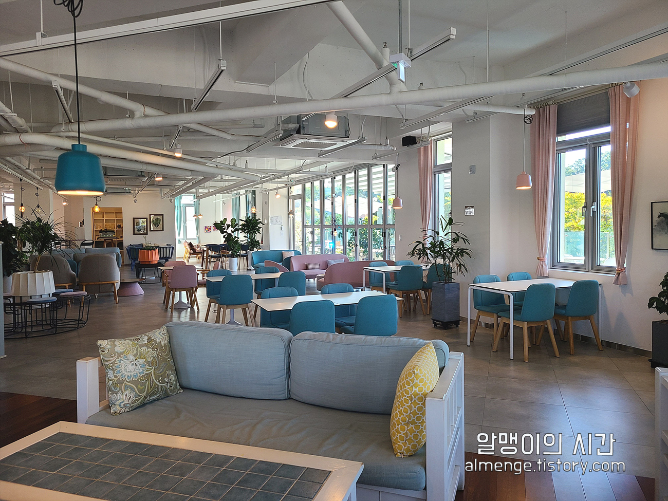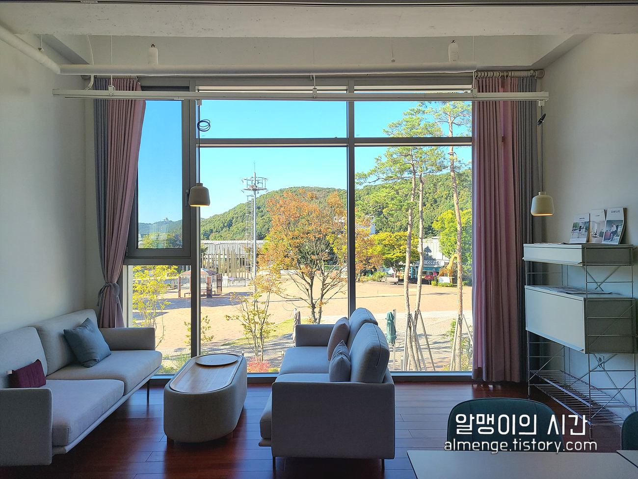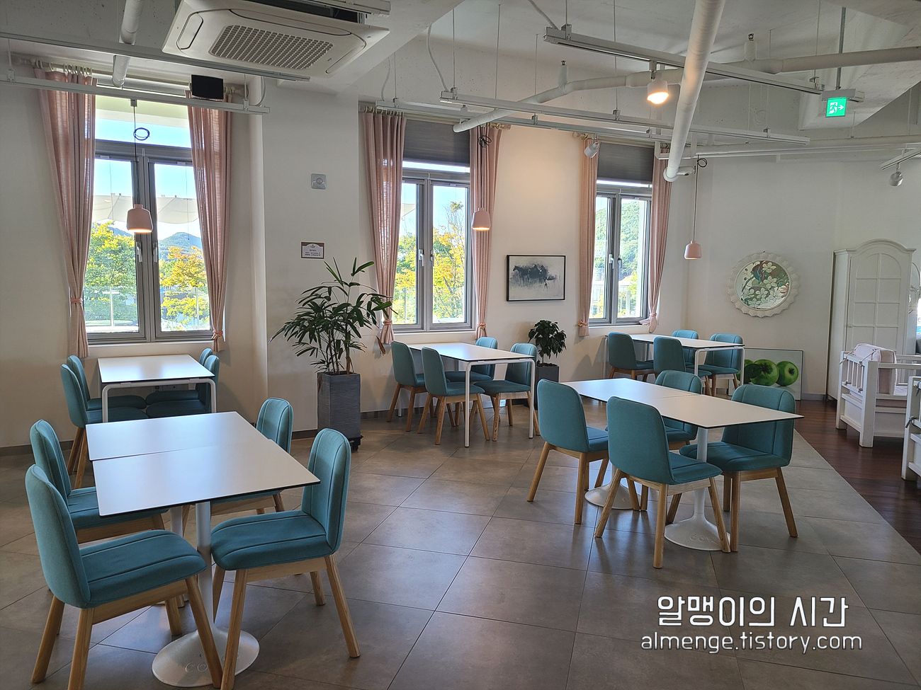 2층은 화이트&파스텔톤으로 꾸며져 있고 창문 너머로 헤이리 마을도 내려다볼 수 있어요.