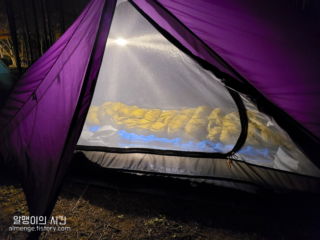 최저 기온 4도 정도의 날씨였지만 새 침낭 + 핫팩으로 매우 포근한 밤을 보냈다. 새침낭 만족쓰!
