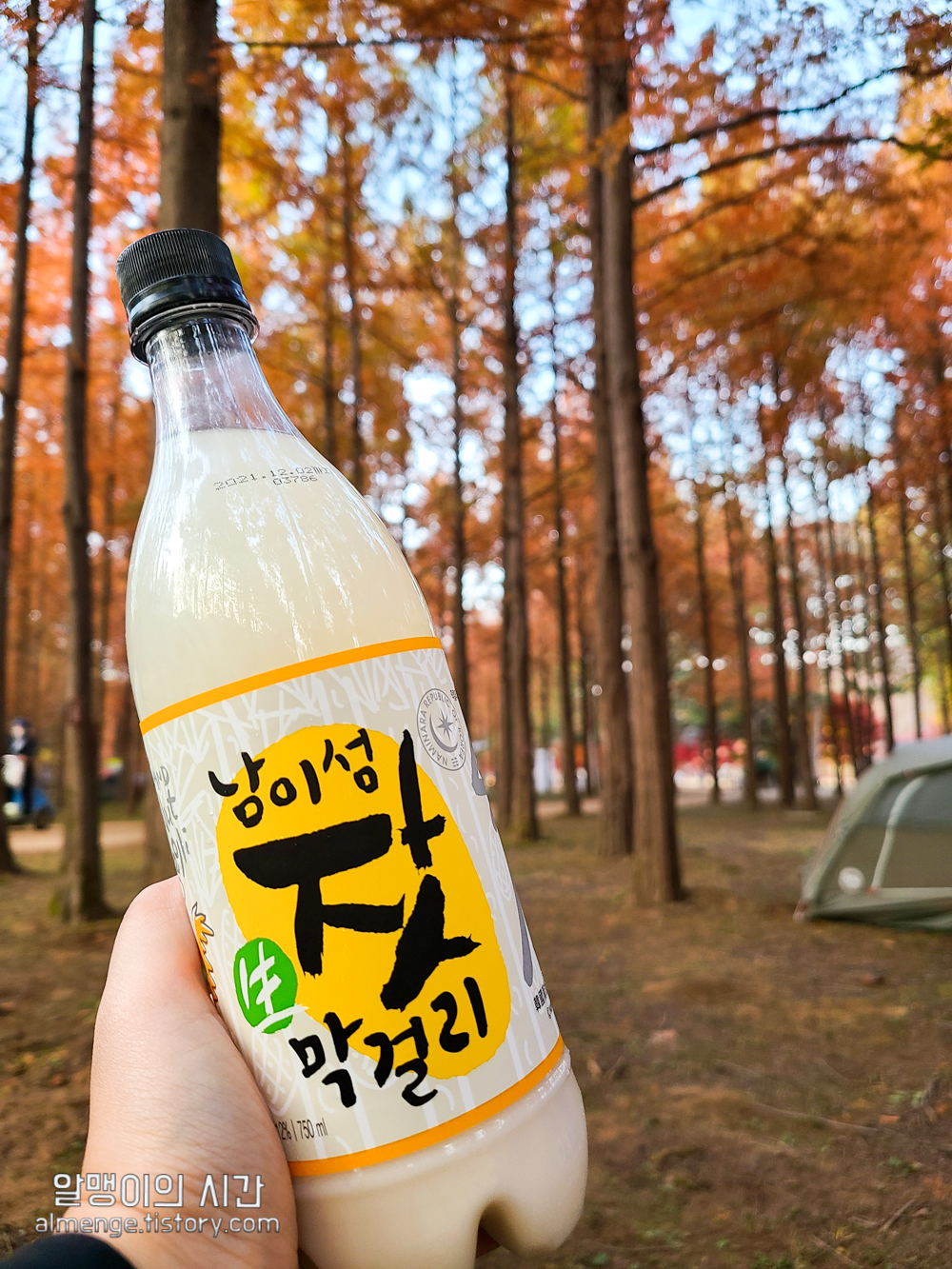 일행들이 캠핑 음식에 진심이라면 난 지역술에 진심인 편^^ 남이섬 잣 막걸리를 놓칠수 있나. 해도 지기 전부터 신나신나