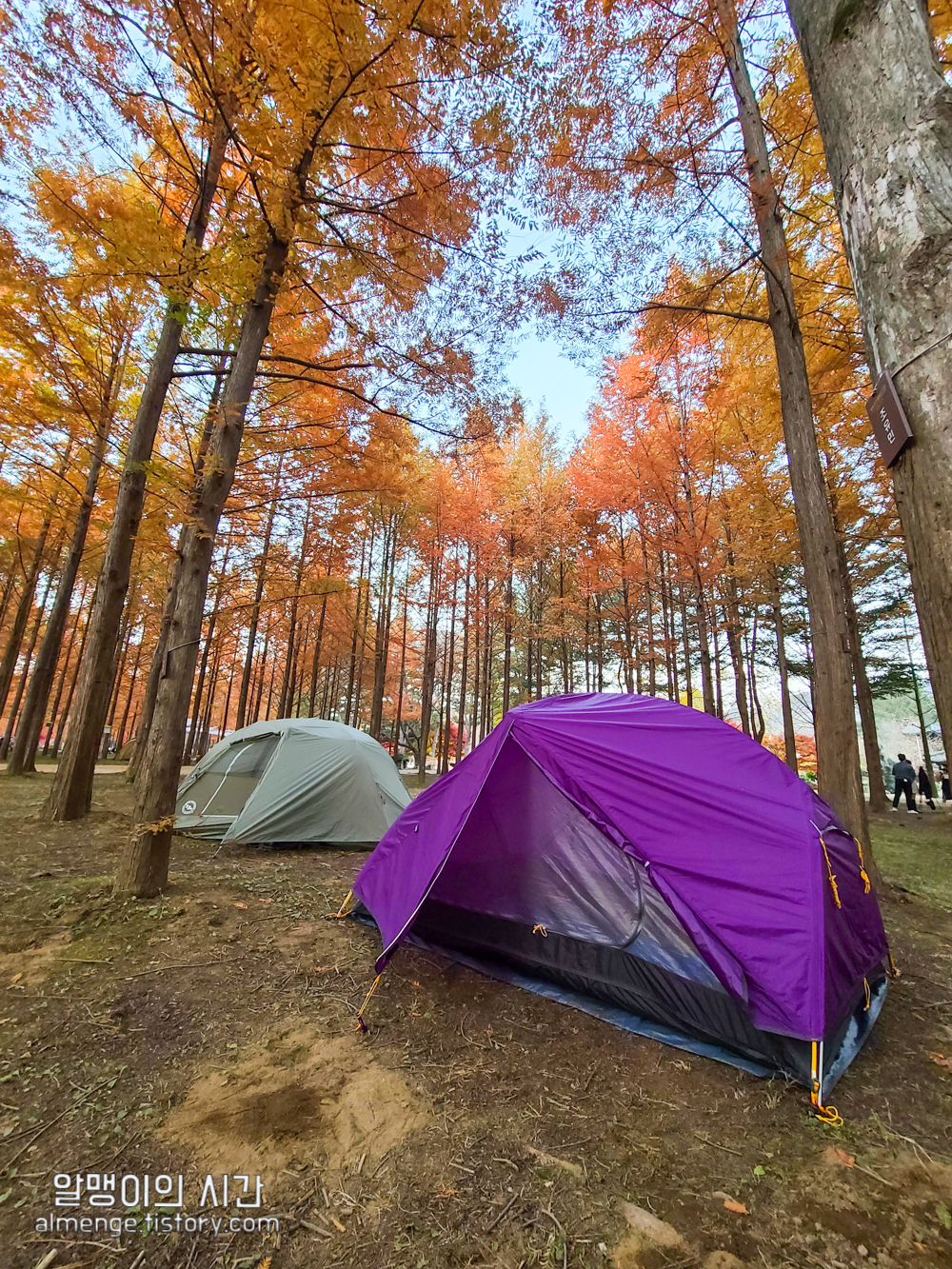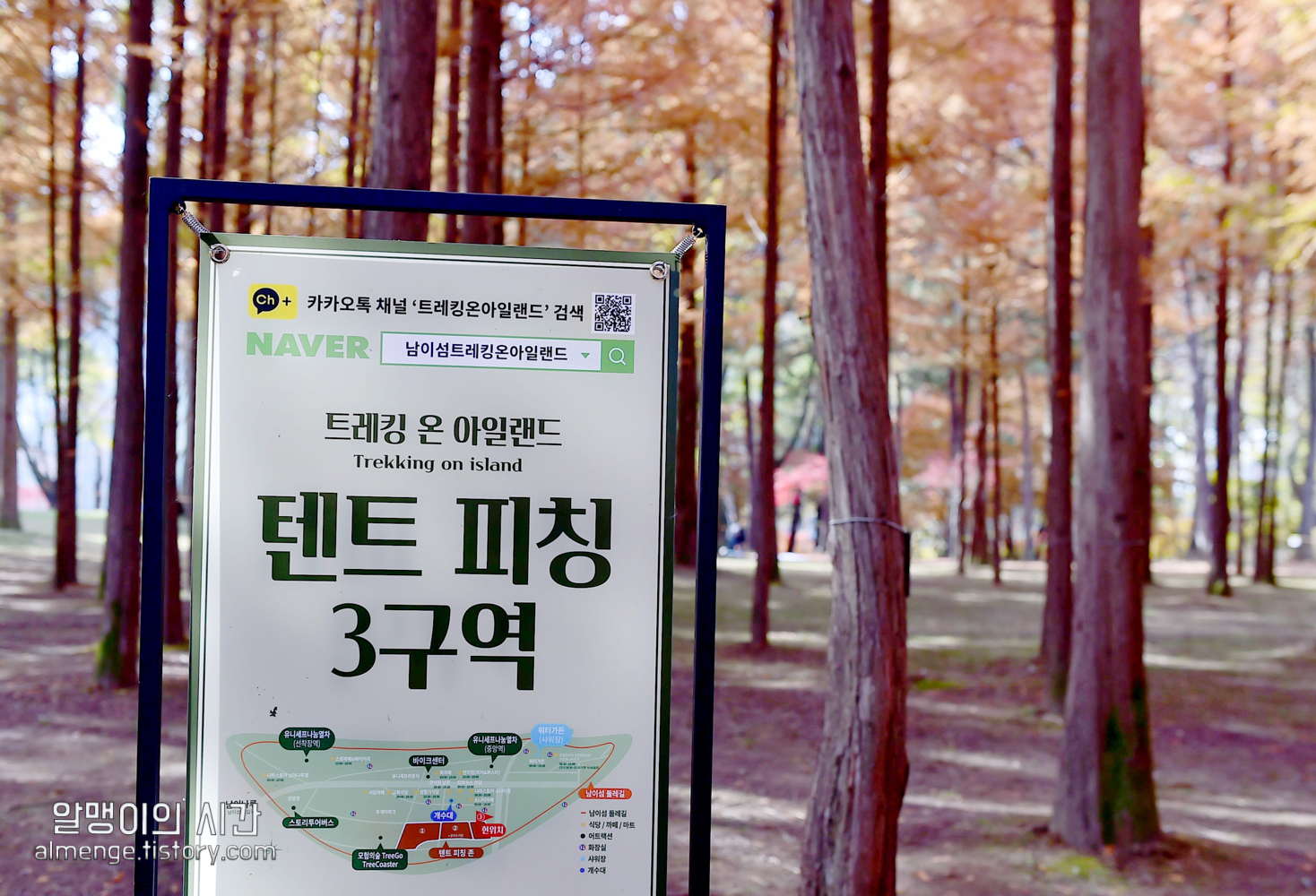 완전 가을가을한 남이섬. 사진만으로도 넘나 예쁜 여기가 오늘의 집이다ㅎㅎ 텐트는 캠핑존 1, 2, 3 중 원하는 곳에 치면 되고 오후 3시 이후부터 텐트 피칭 가능. (다음날 오전 11시까지 철수)