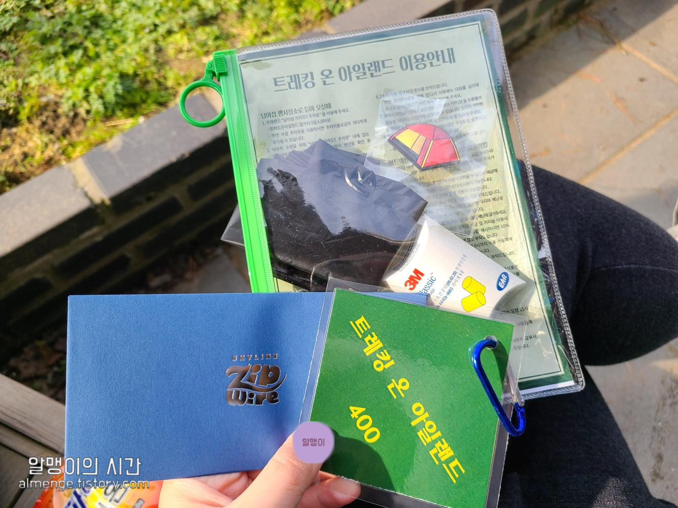 주차를 했으면 요 우뚝 솟은 짚와이어 매표소에서 미리 예약한 트레킹 온 아일랜드 티켓을 수령하면 된다. 매표소에 들어가면 짚와이어 타려는 사람들이 줄서 있는데 트레킹 온 아일랜드라고 말하니 줄서지 않고 따로 처리해준다.