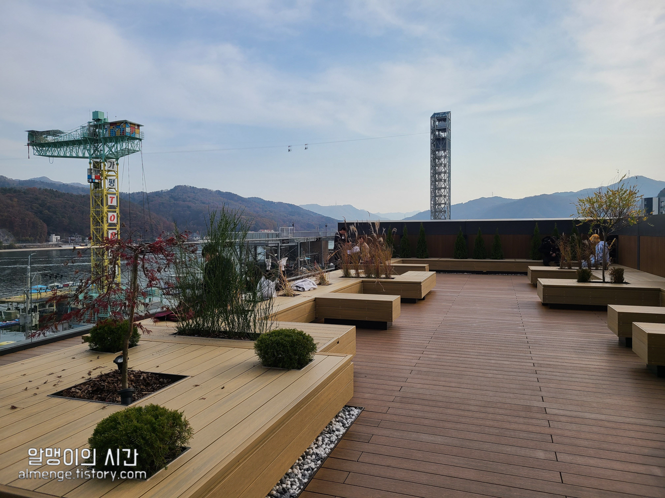 근데 남이섬 스벅 생각보다 좋다. 층도 5층인가 6층까지 있고 무려 루프탑이 있는 스벅. 루프탑에선 강 바라보며 사람들 번지점프 하는거 구경하는 재미가 쏠쏠했다 ㅋㅋㅋ