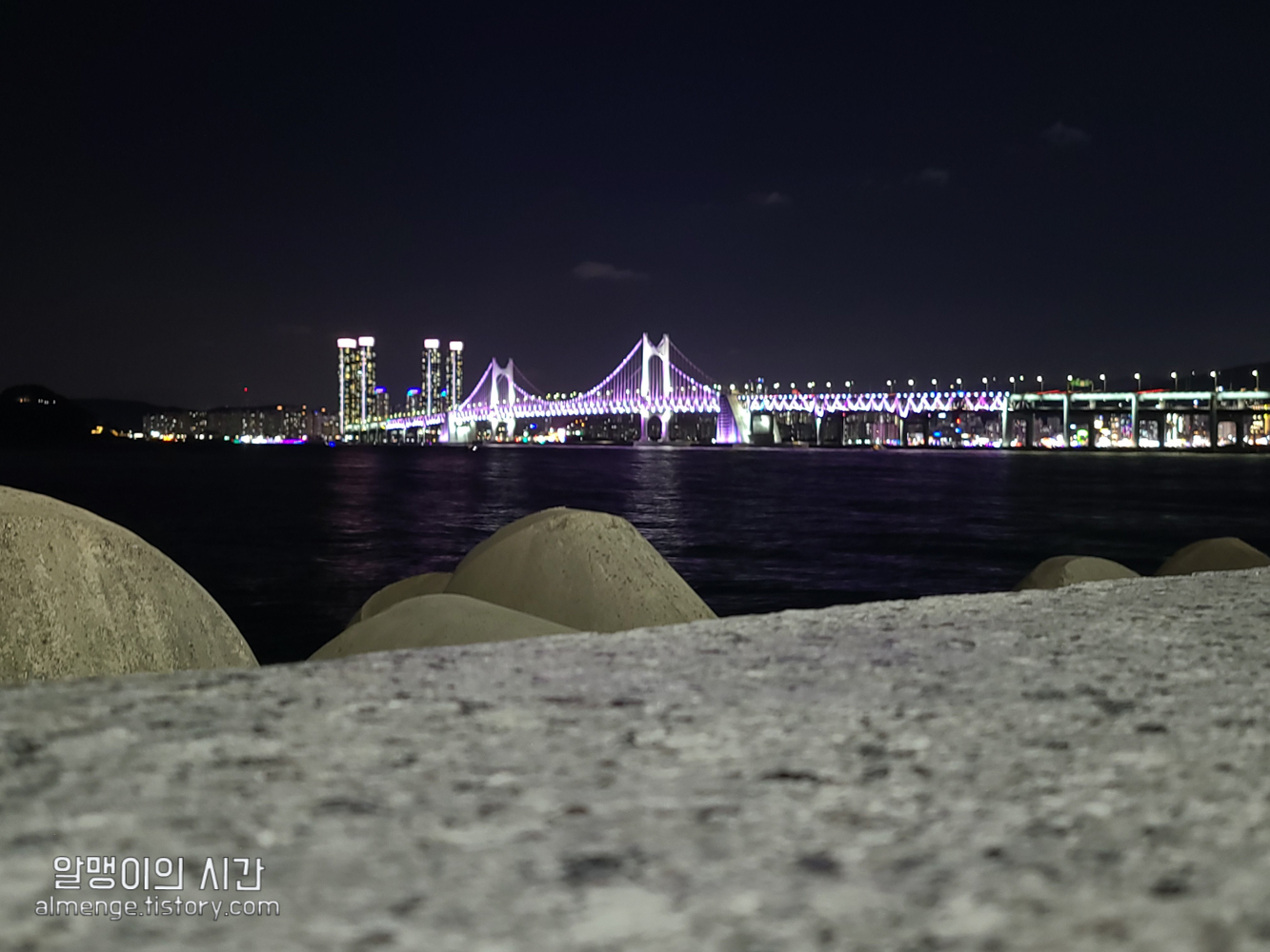 리조트 앞 밤바다를 걸으며 봤던 광안대교 야경이 기억에 남네요.