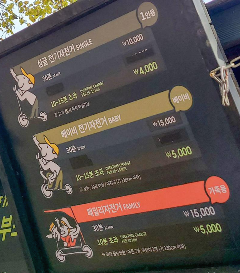 제가 이용한 싱글 전기 자전거는 30분에 10000원이었는데 저는 트레킹 온 아일랜드 티켓에 포함된 이용권으로 무료 이용했어요.