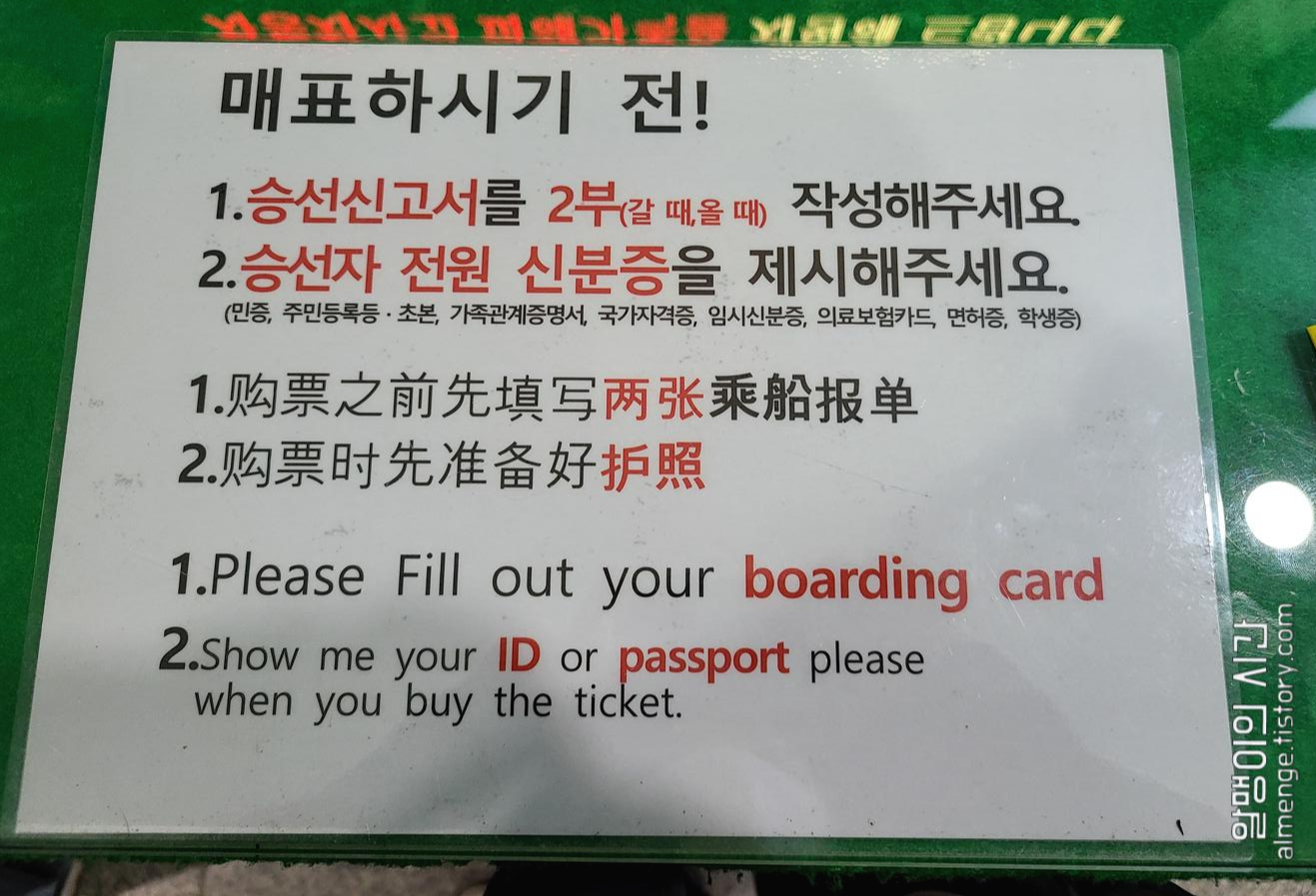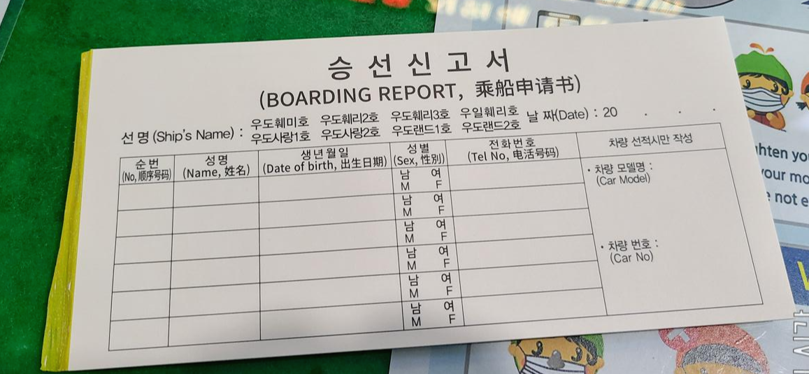 매표소에 가면 승선 신고서를 먼저 작성하고, 신분증을 챙겨서 표를 구입하면 된다.
