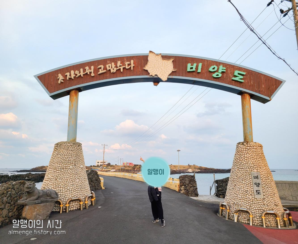 연결된 도로를 건너 우도에서 비양도로 들어가야 함.
