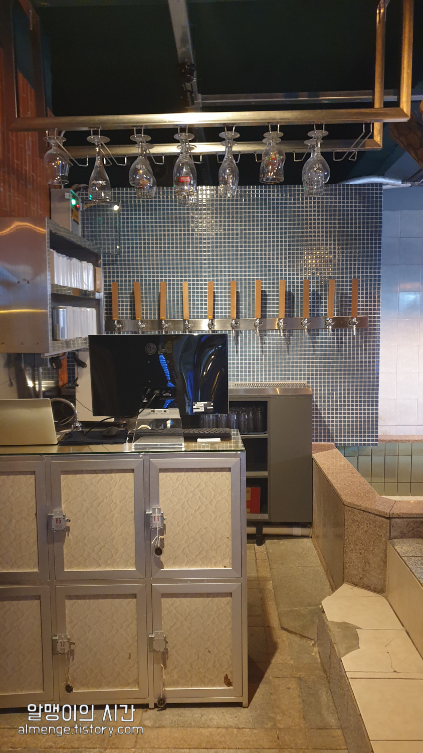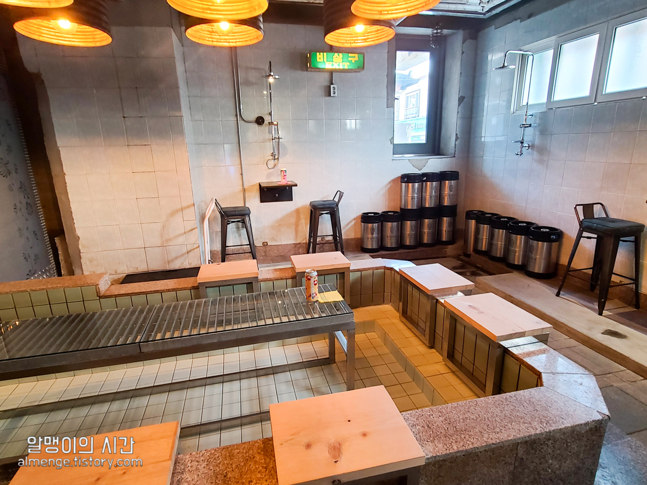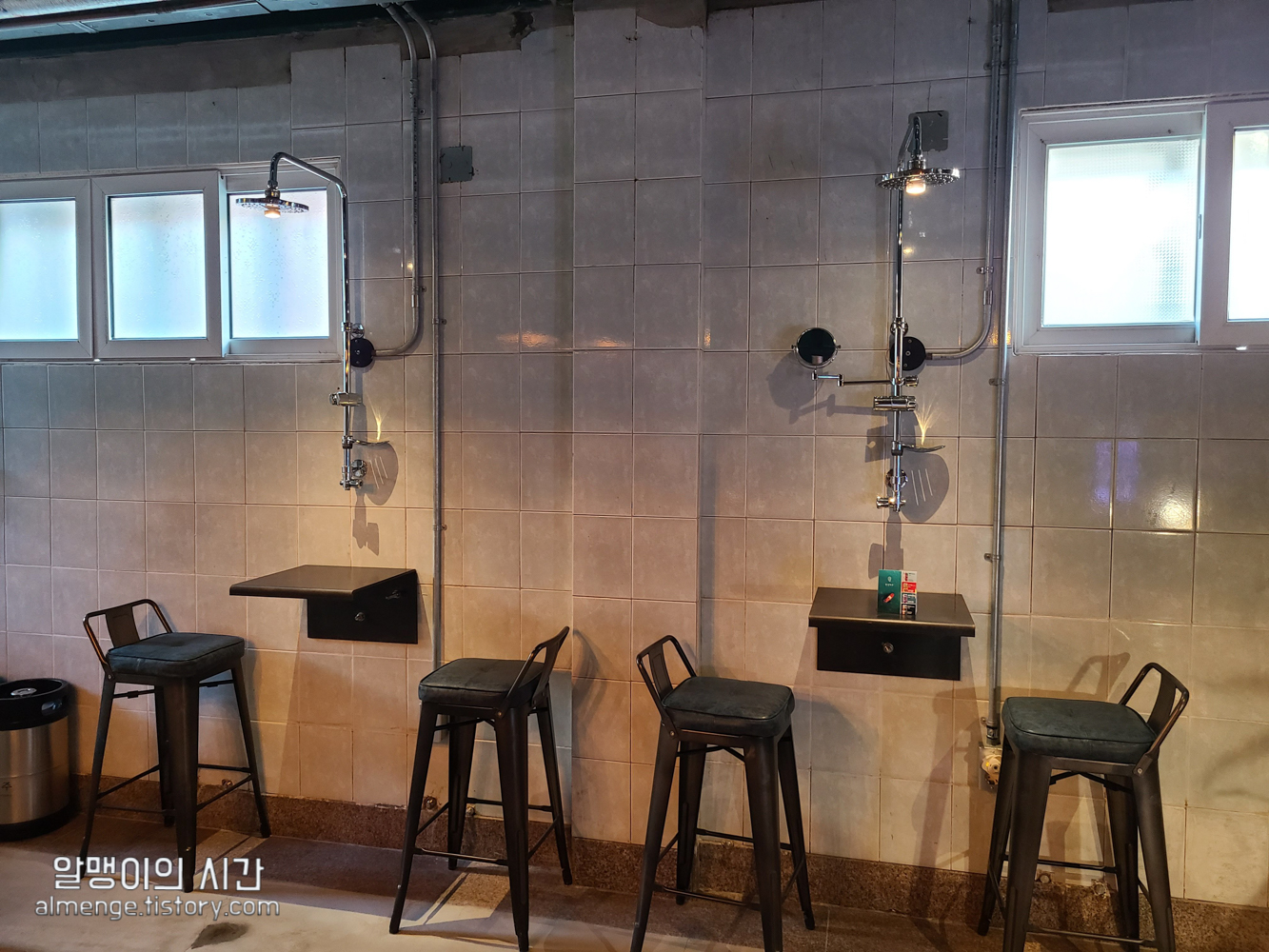 양조장 공간을 지나오면 딱 봐도 목욕탕인 공간이 나오는데요. 목욕탕 인테리어를 최대한 살려 펍으로 만든 인테리어가 독특했어요. 코시국만 아니면 마시고 가면 딱이겠고만 그러지 못해 너무 아쉬웠어요 ㅠㅠㅠ 그래도 자유롭게 사진은 찍게 해주셔서 사진 열심히 찍어 왔어요.