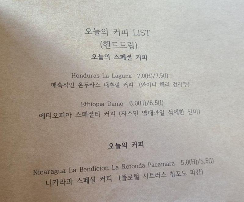 대형 카페도 아닌데 여러 가지 커피를 취급하고 있어서 놀랐어요.
