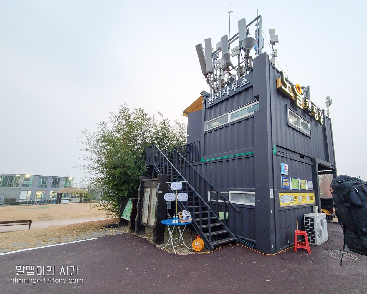 노을 캠핑장 관리 사무소 바로 앞에 내려줌. 관리사무소에서 발열체크 및 체크인을 하고 나면 캠핑장으로 고고싱