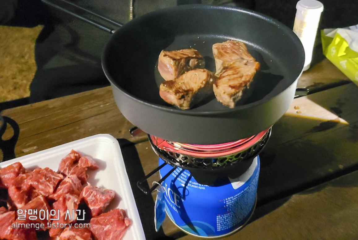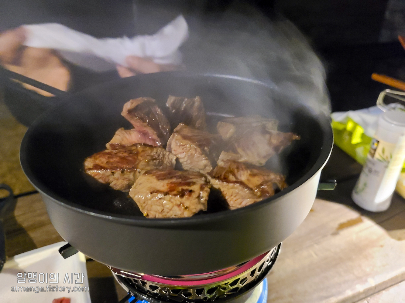 그래도 캠핑가서 먹는 첫 소고기 되시겠다