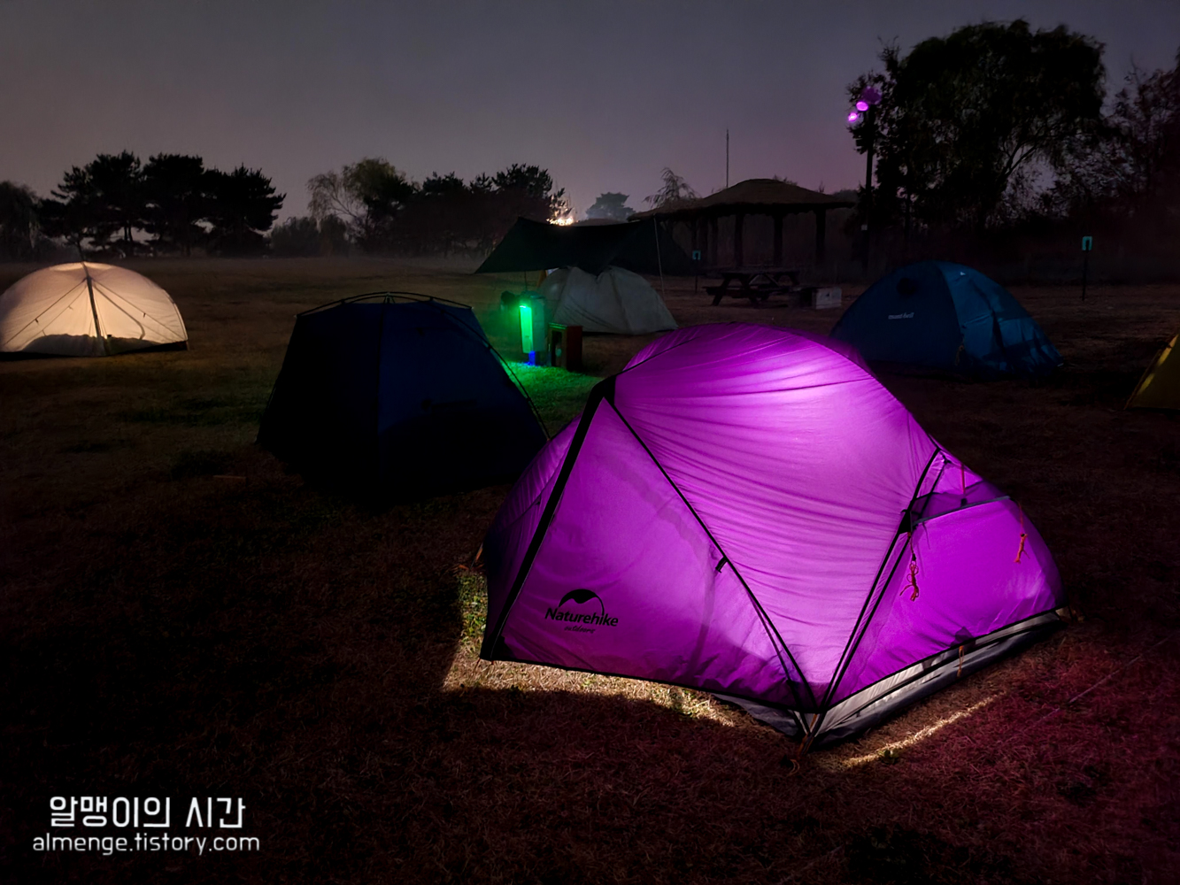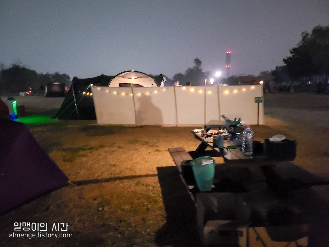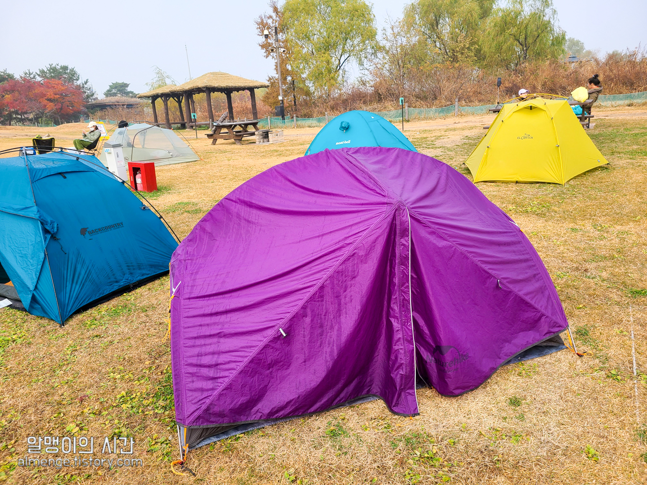 그 옆 사이트 사람들은 초록, 파랑 텐트를 가지고 왔다 ㅋㅋㅋ