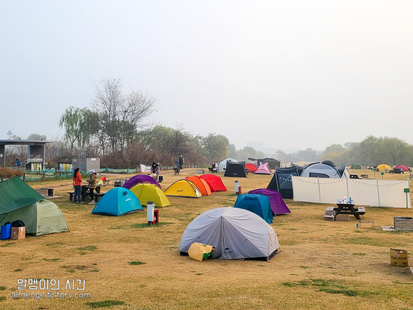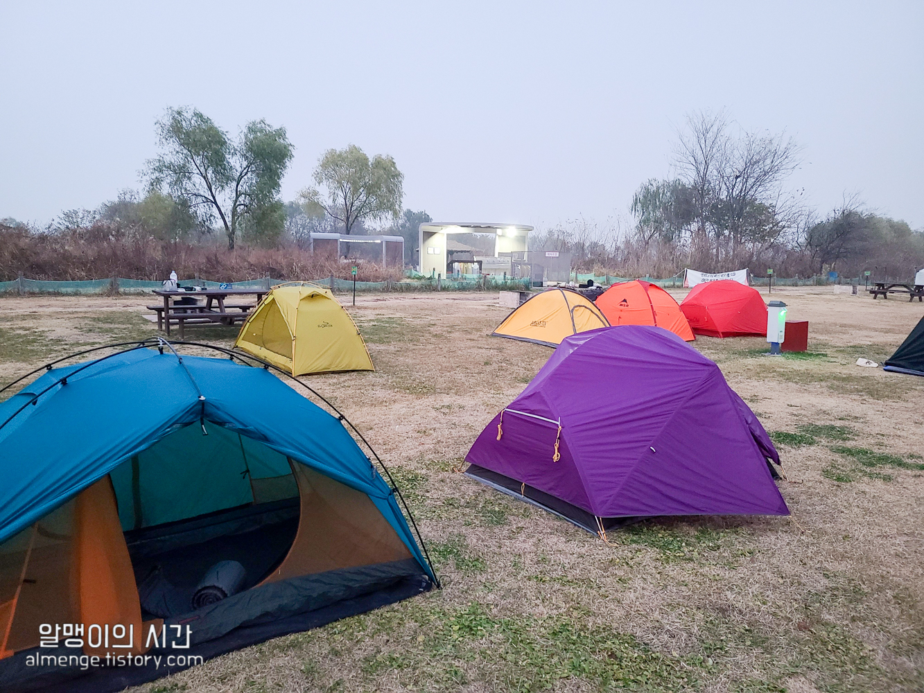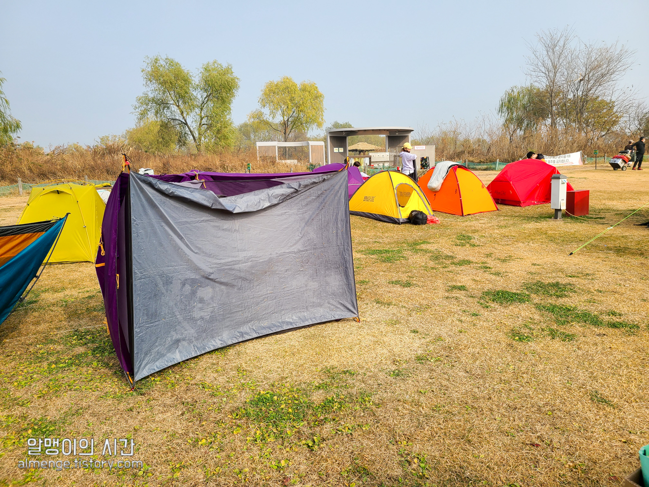 그 옆 사이트 사람들은 초록, 파랑 텐트를 가지고 왔다 ㅋㅋㅋ