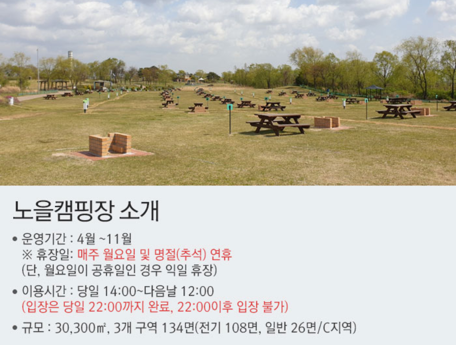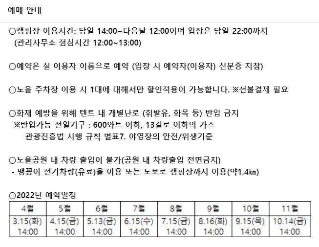 그럼 올 겨울에 한 번? 이라고 생각하시는 분들께는 실망할 만한 소식인데 노을 캠핑장은 동계 시즌엔 운영하지 않는다 ㅠㅠㅠ 매년 4월~11월에만 운영하는 캠핑장이니 이 포스팅이 올라오는 현재는 캠핑 불가! 내년 4월부터 노려 보시길