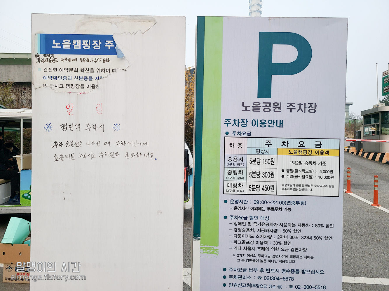 원래 이 주차장은 경차, 저공해차량 등은 50프로 할인이 되지만 캠핑장 이용객으로 주차요금 할인을 받는 경우에 중복 적용은 안된다. 내 차도 경차지만 중복할인이 안되서 만원 지불함.