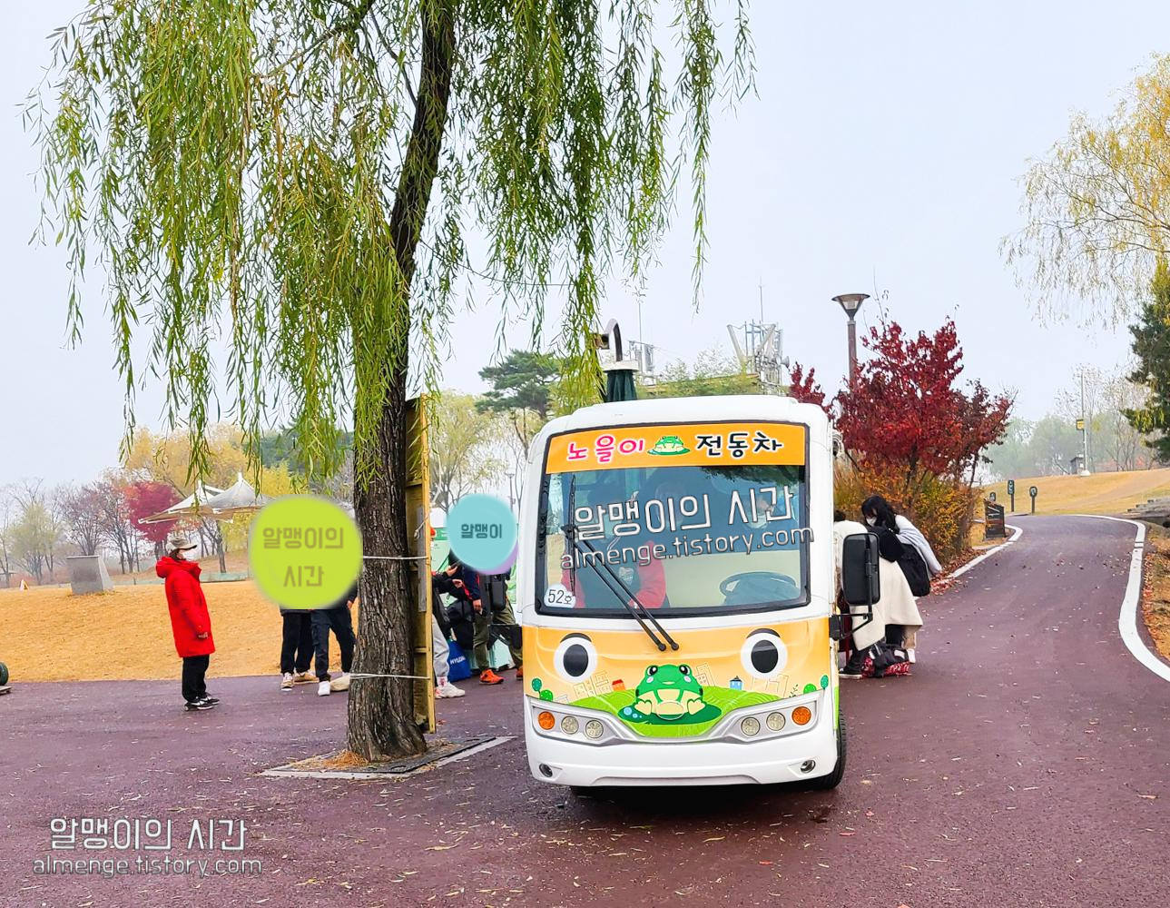 맹꽁이차 이용료는 성인 기준 왕복 3000원. 주차장에 있는 무인 키오스크에서 이용권을 구매해서 주차장에서 바로 맹꽁이차 탑승! 맹꽁이 전기차 운영시간은 10:00~21:00 (4월~11월 화, 수, 목요일은 10:00~20:00)이니 참고