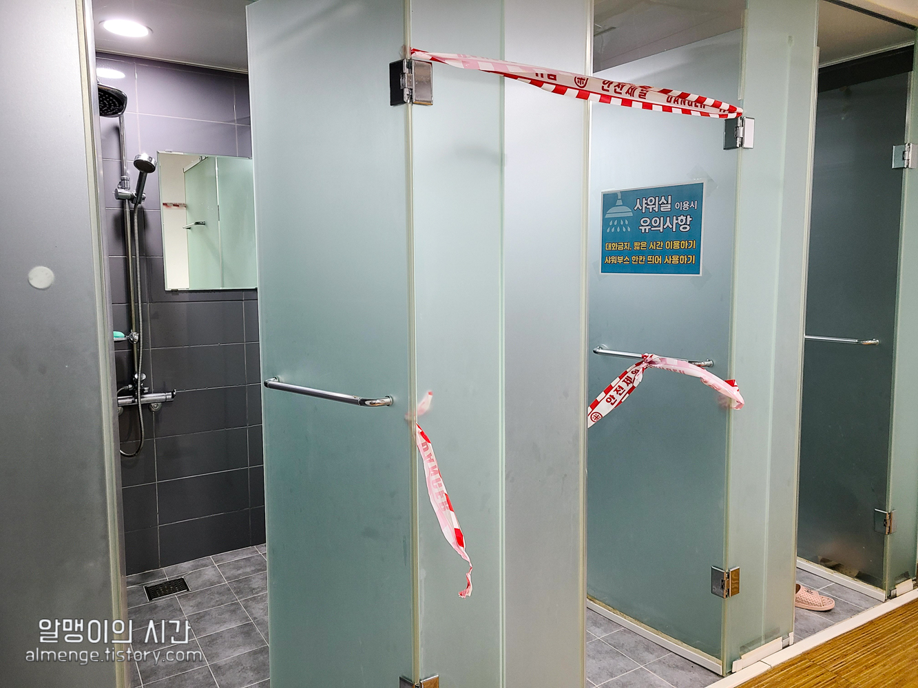 코시국 샤워실 거리두기 중이라