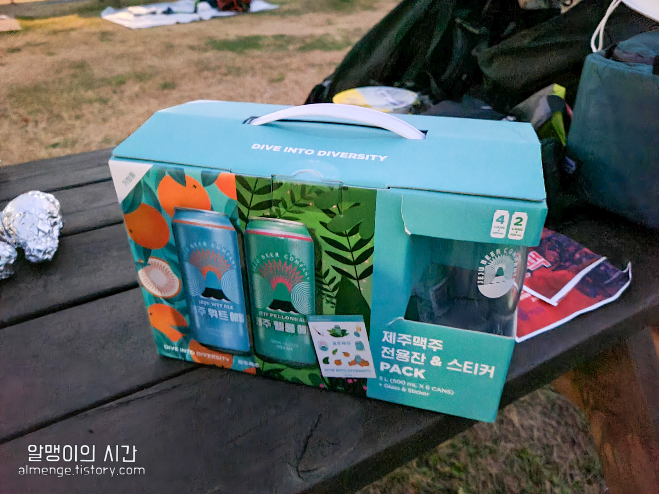 저런 여섯 캔 세트를 사옴.....^^무려 사은품 맥주컵까지 알차게 껴 있는 ㅎㅎ