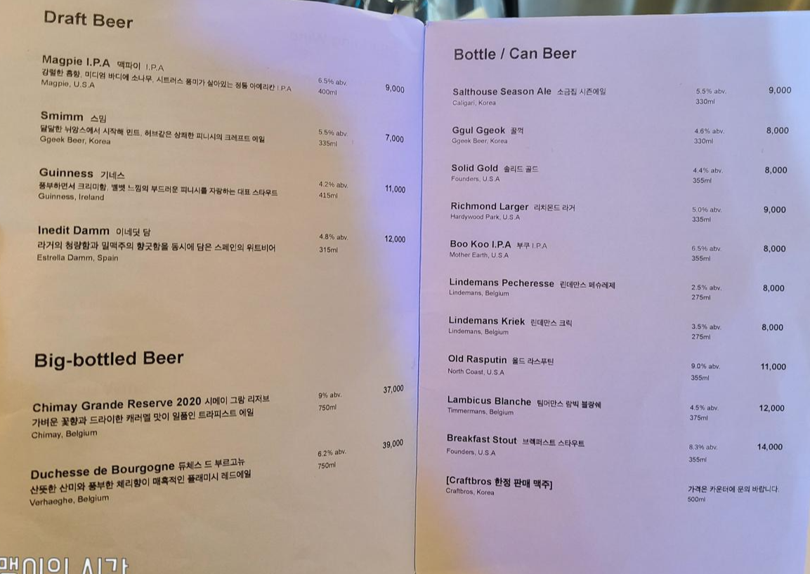음료 메뉴판도 첨부하니 참고하세요! 와인 라인업이 정말 다양했는데 네추럴 와인까지 있는거 보고 깜놀. 정말이지 저녁에 방문했으면 와인 한 병 시켜서 플래터랑 먹고 싶었어요. 물론 술은 낮에도 마실 수 있죠 ㅎㅎ 하지만 난 혼자 왔을 뿐이고....ㅠㅠ