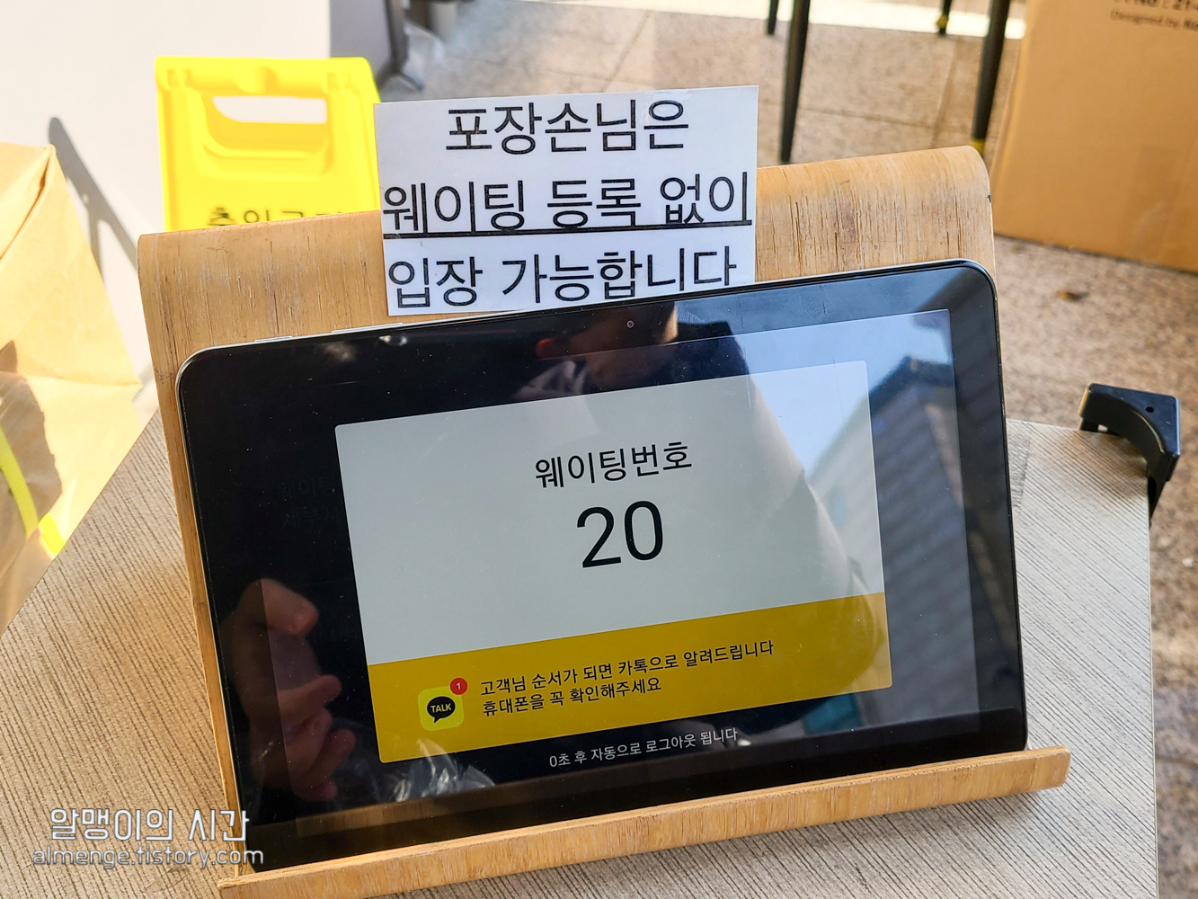 30분 대기 예상이라 나왔는데 실제로는 20분 만에 알림톡이 와서 많이 기다리지 않고 입장했어요.