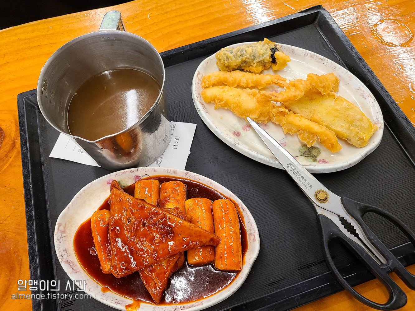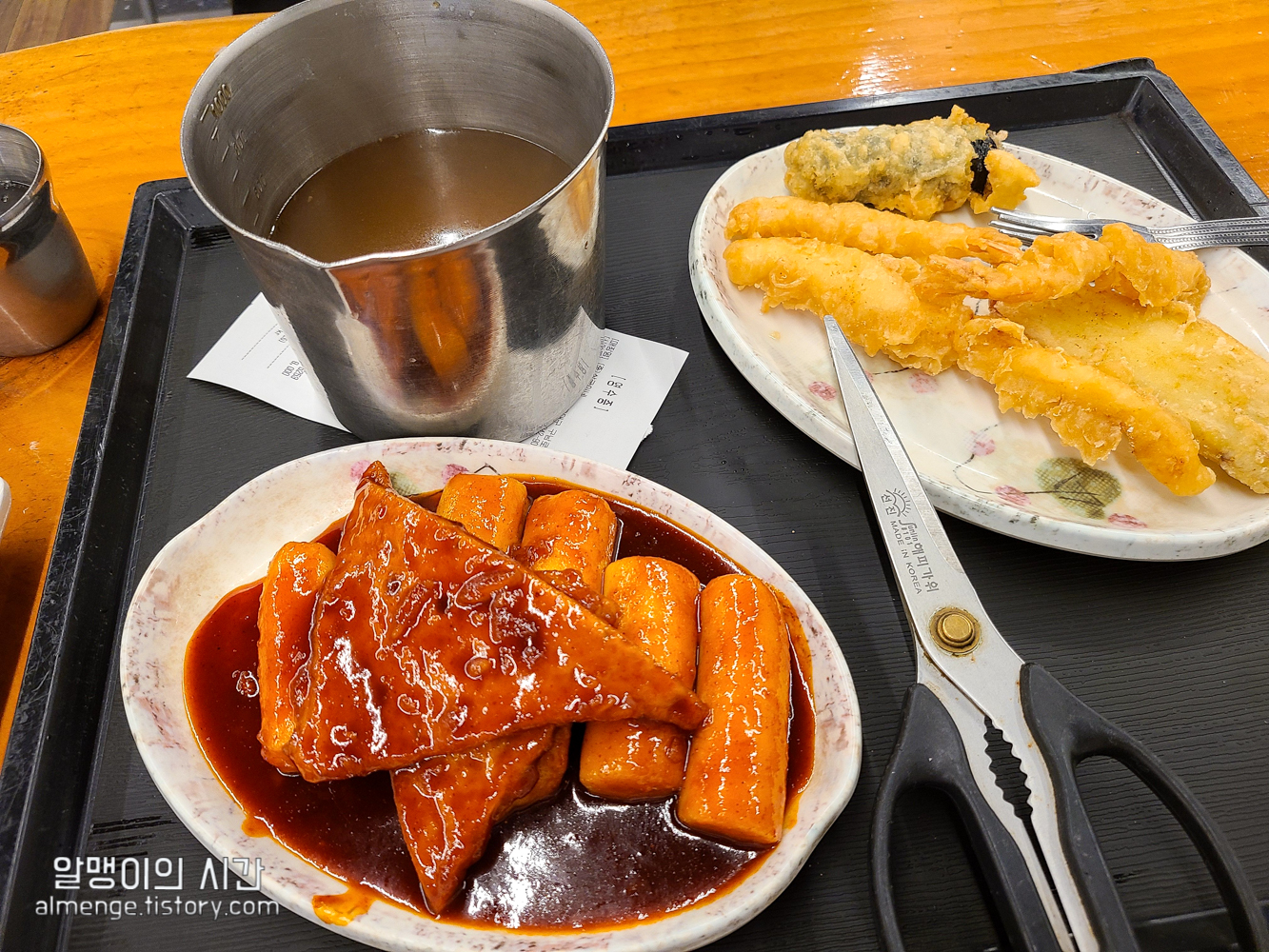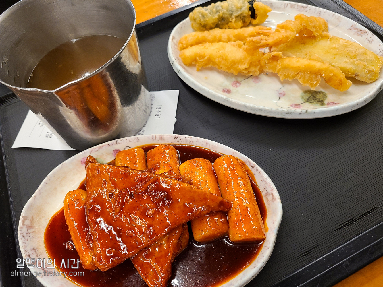 주문하면서 먹고 갈거라고 하면 진동벨을 주는데 진동벨이 울리면 가서 받아오면 됩니다. 다 조리되어 있는 음식이라 금방 나왔어요. 떡볶이 1인분과 튀김 5개. 오뎅국물 따로 요청 안해도 알아서 넉넉하게 챙겨주셔서 굿 ㅎㅎ