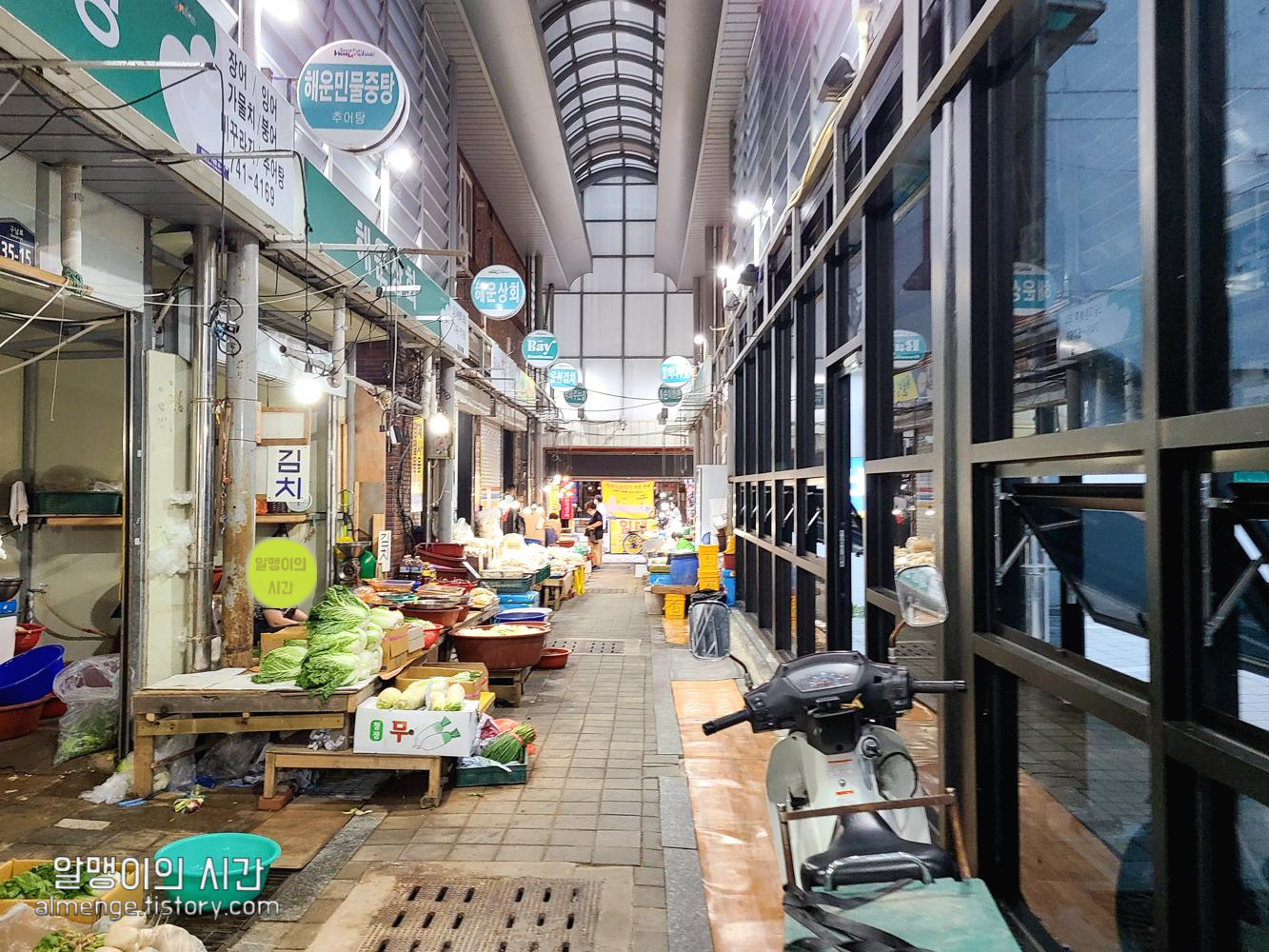 넓은 길을 걷다보면 이렇게 해운대시장으로 빠지는 길이 나와요. 시장 구경도 할겸 천천히 구경하며 들어갔어요. 해운대시장 들어가는 입구는 여러군데니 위 입구 말고도 다른 입구들이 있어요.